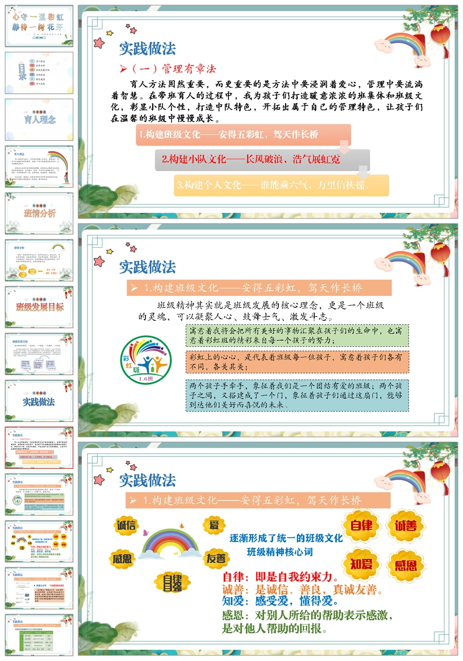 【8478】彩虹班级带班育人方略《心守一道彩虹》PPT课件+发言稿