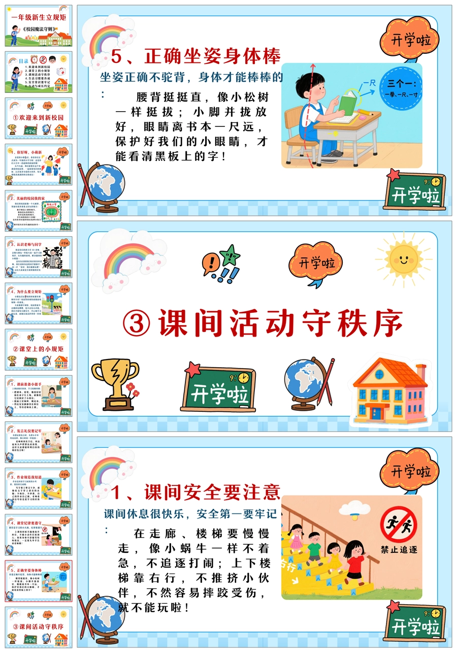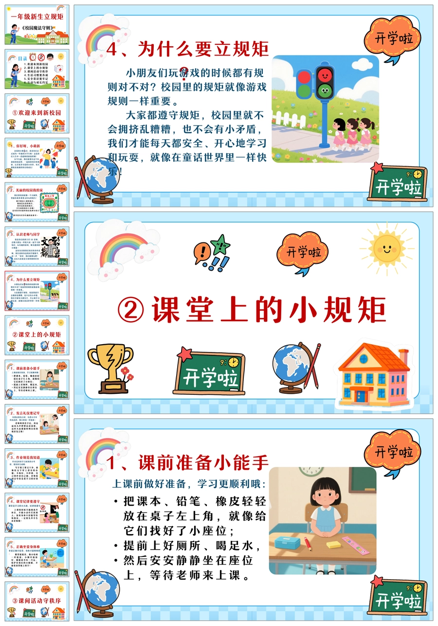 【8513】《一年级立规矩》一年级开学第一课常规教育PPT课件+逐字稿
