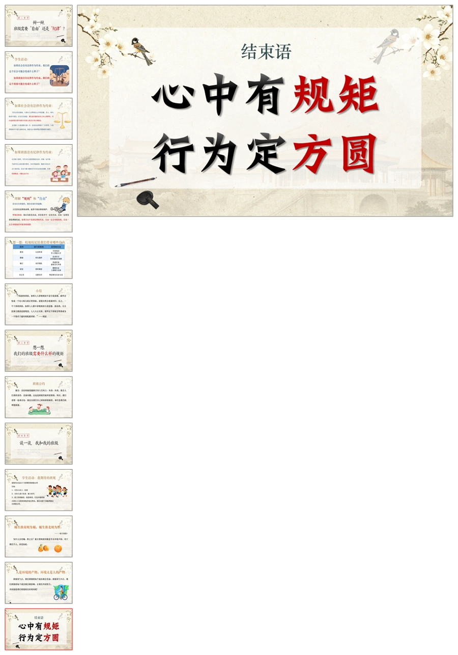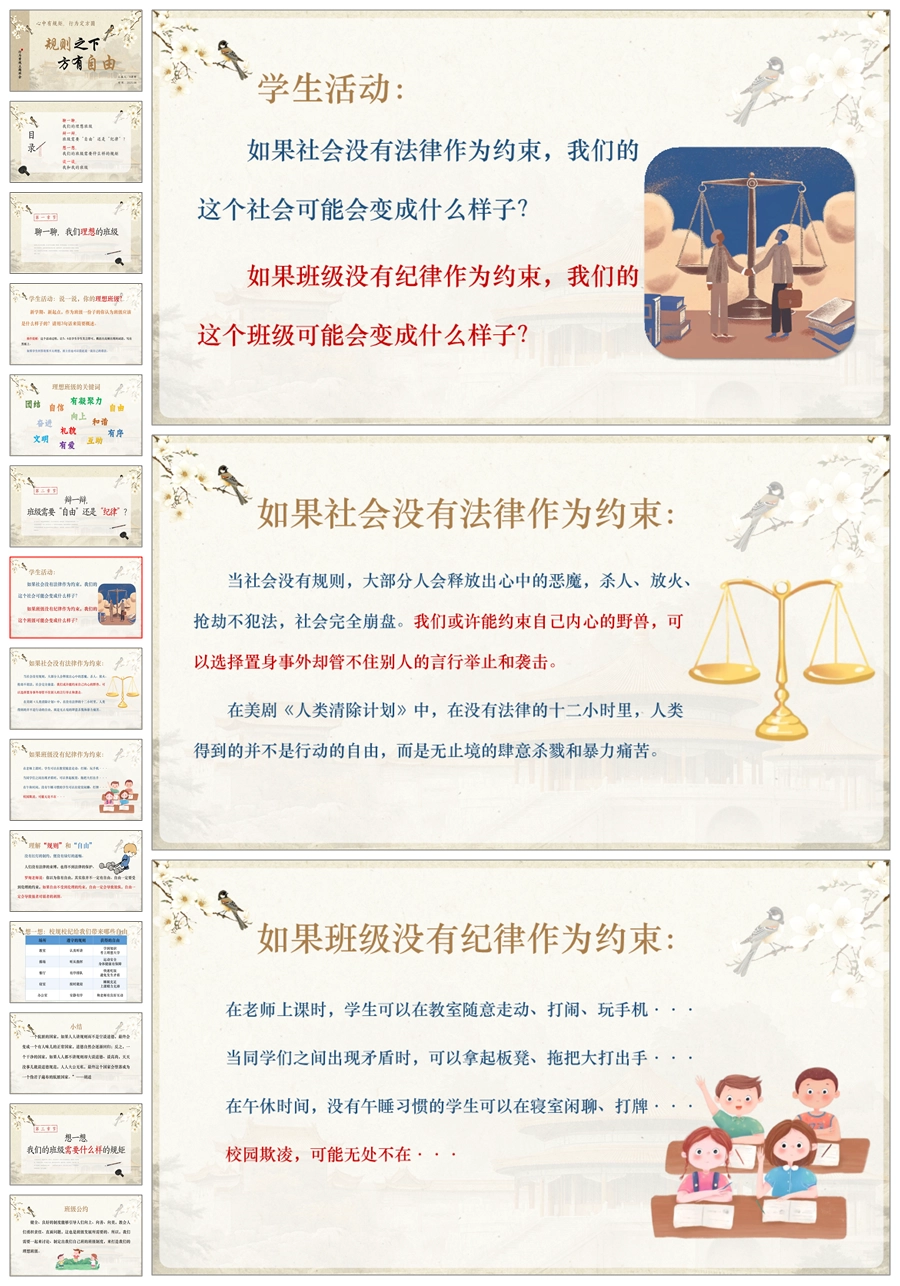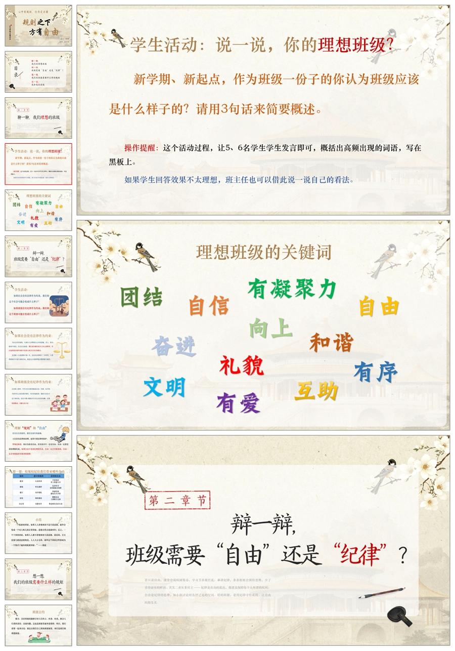【8540】班级纪律话题班会《规则之下,方有自由》PPT课件+教案
