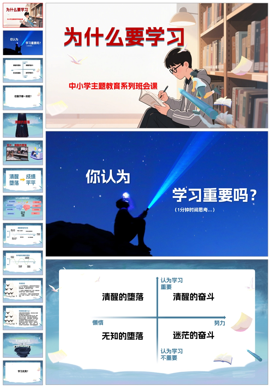 首页 中学班会 【5065】主动学习主题班会《为什么要学习》学习内驱力主题班会ppt课件+教案+视频