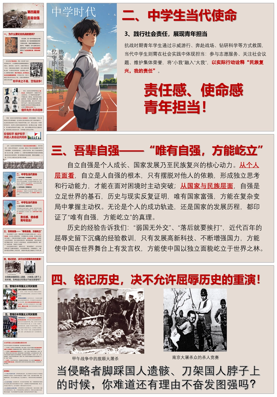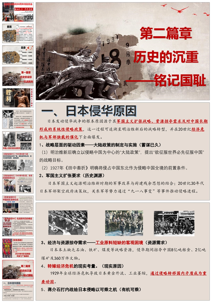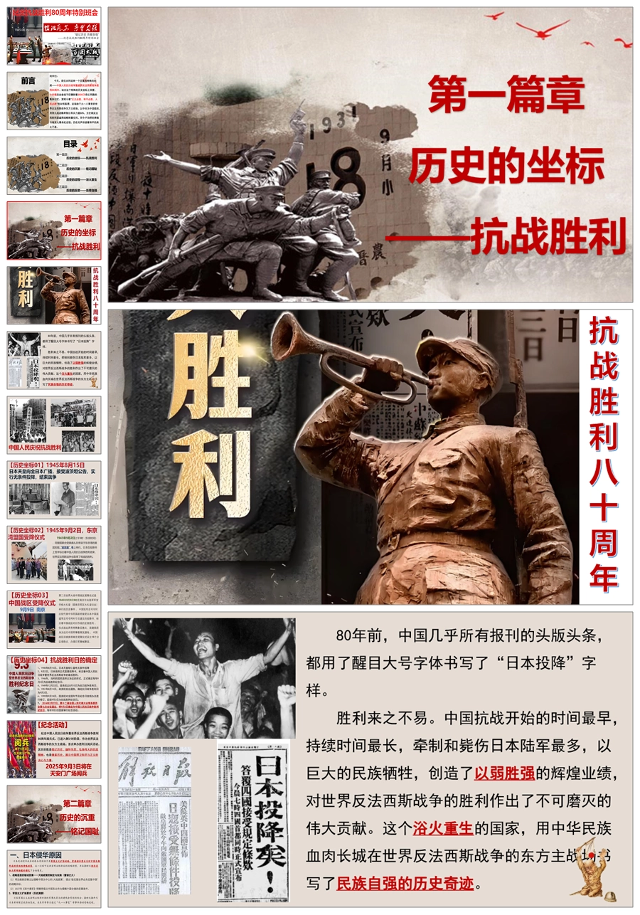 【5080】《铭记历史,吾辈自强——纪念抗战胜利80周年》爱国教育主题班会ppt课件+教案