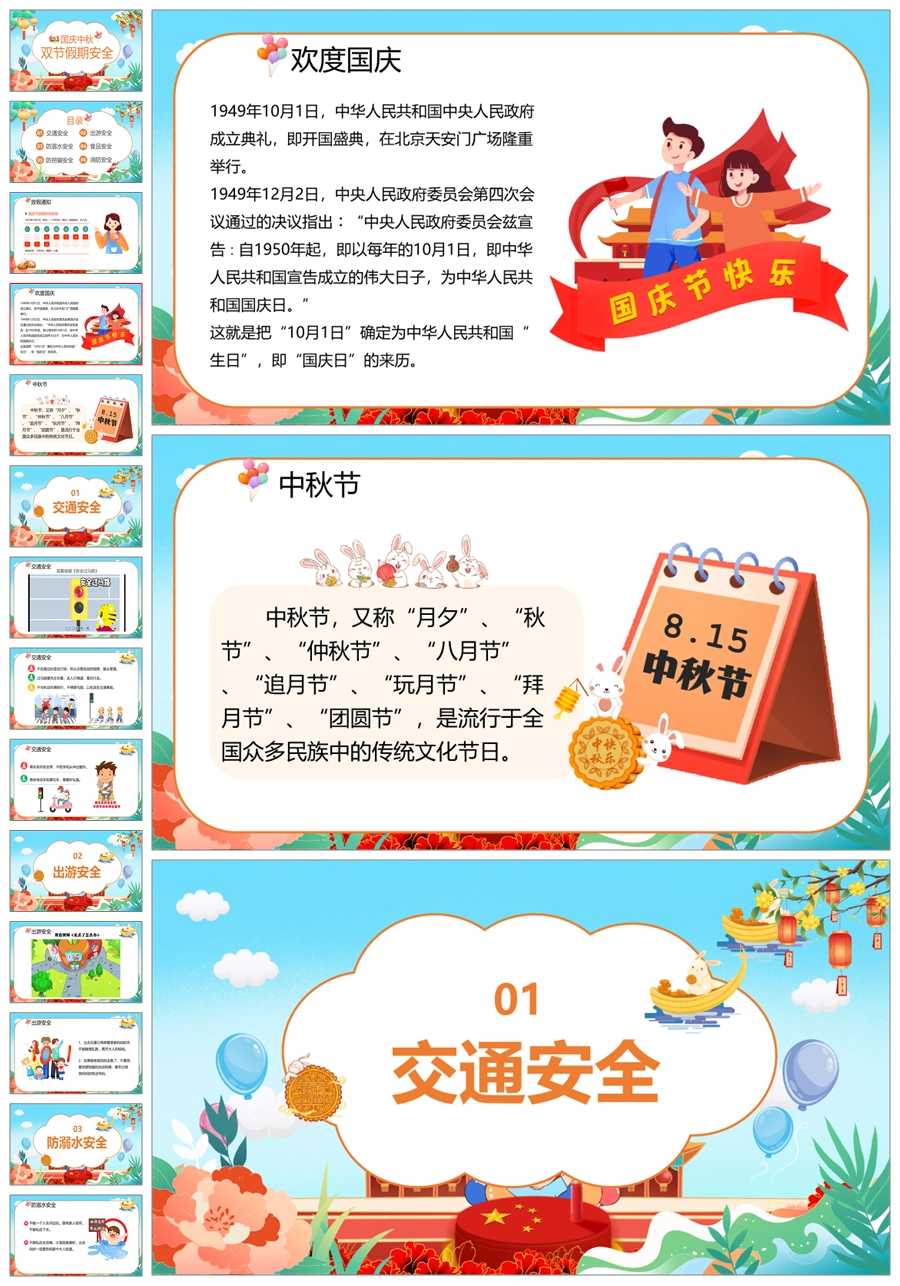 【5086】2025国庆中秋假期安全教育主题班会ppt课件+教案