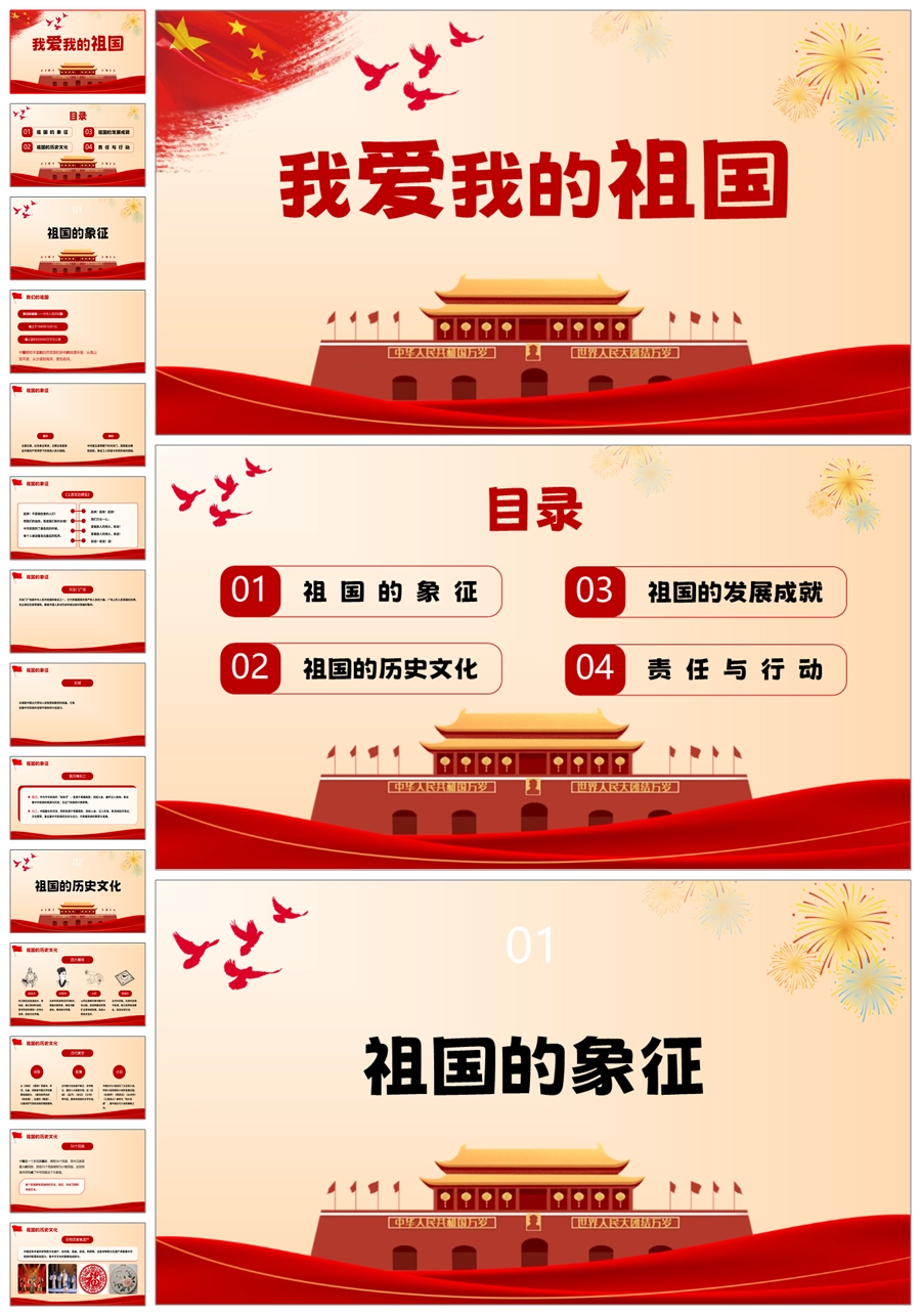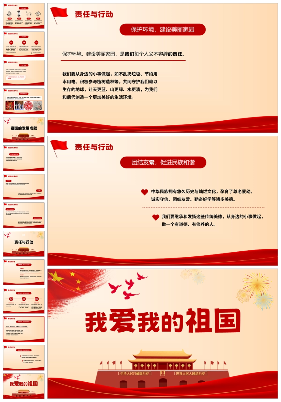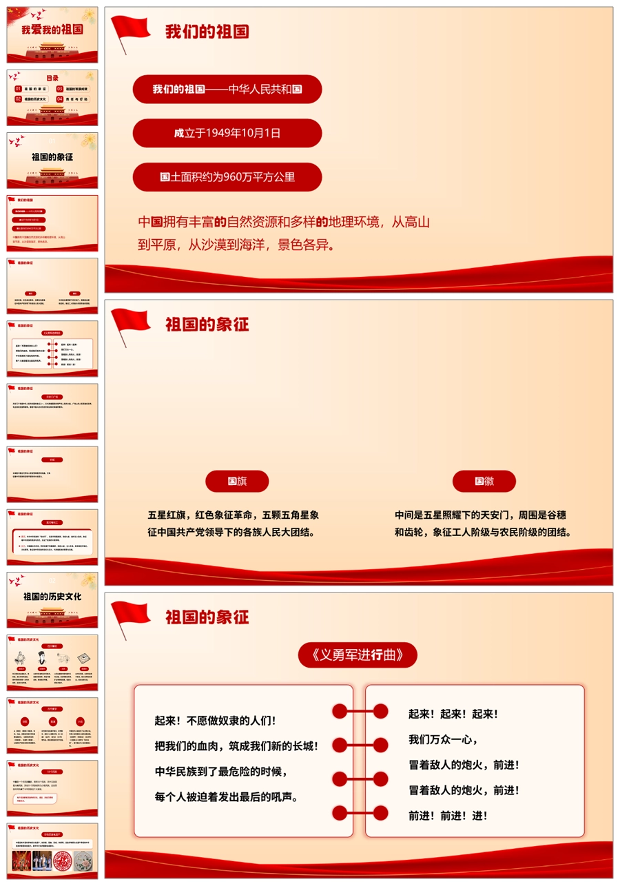 【5093】《我爱我的祖国》国庆节主题班会ppt课件+教案+发言稿