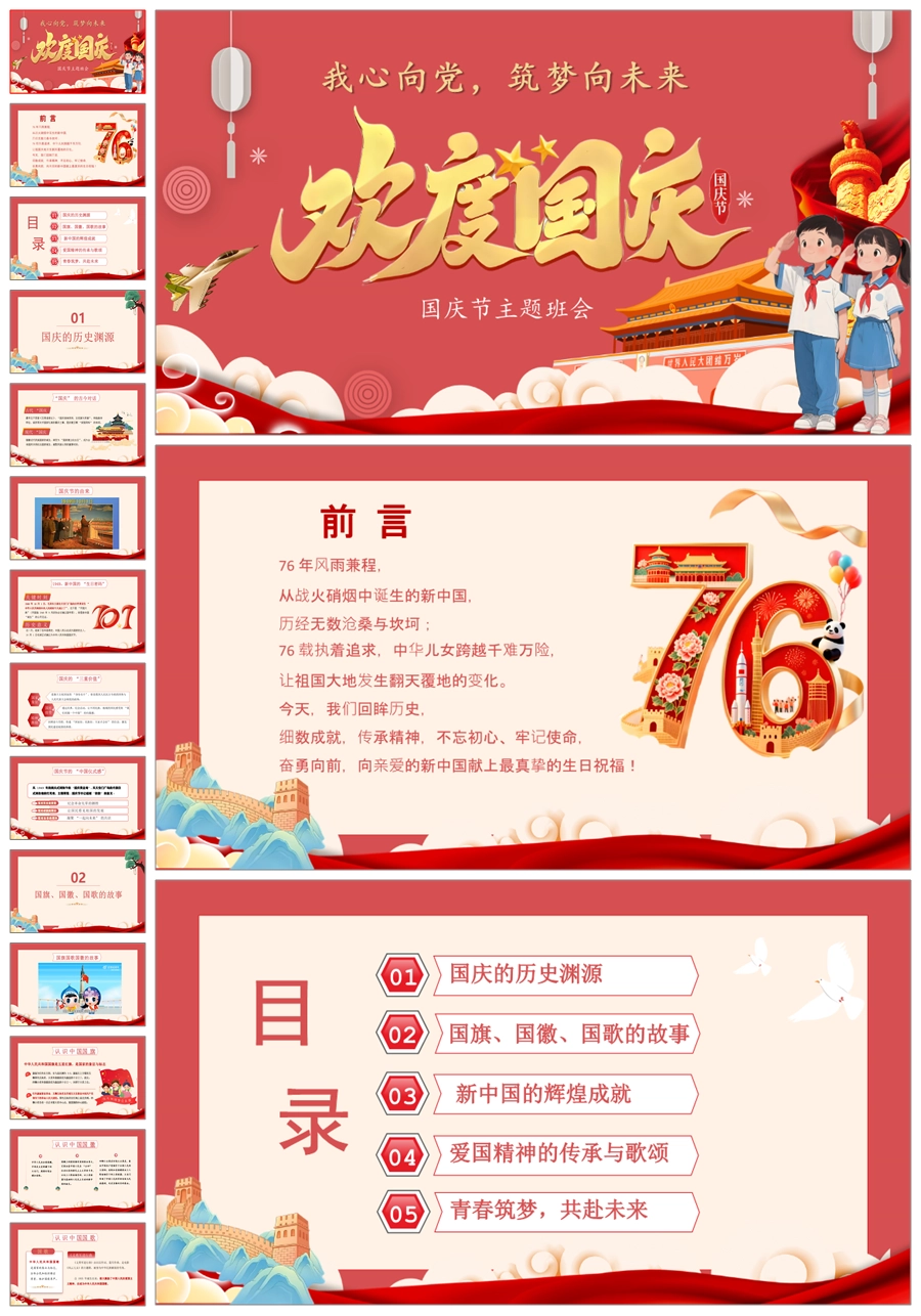 【5095】《我心向党》国庆节主题班会ppt课件+教案+逐字稿+视频