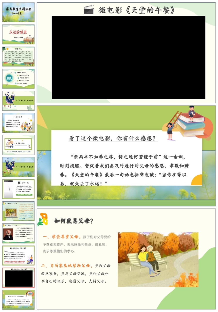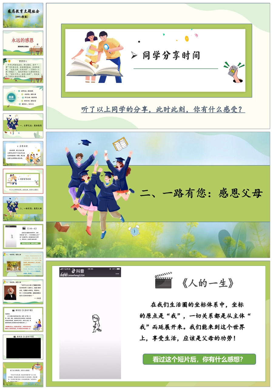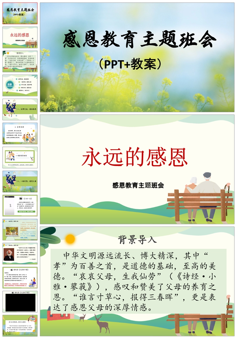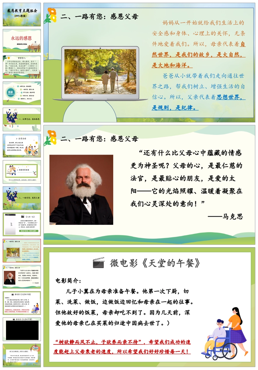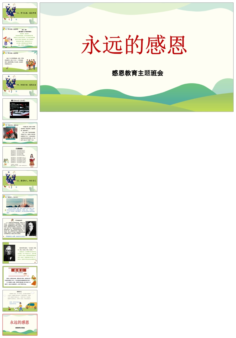 【8003】【感恩话题】《永远的感恩》感恩教育主题班会PPT(课件+教案)