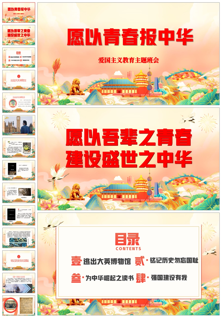 【8015】【爱国教育】《愿以青春报中华》国庆爱国主题教育主题班会(讲稿+课件+视频)