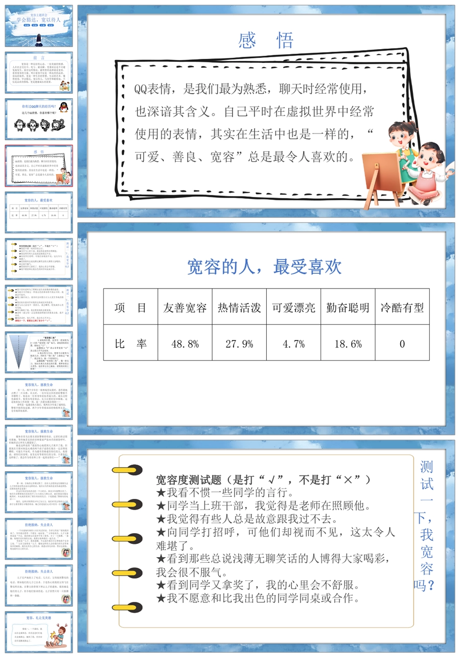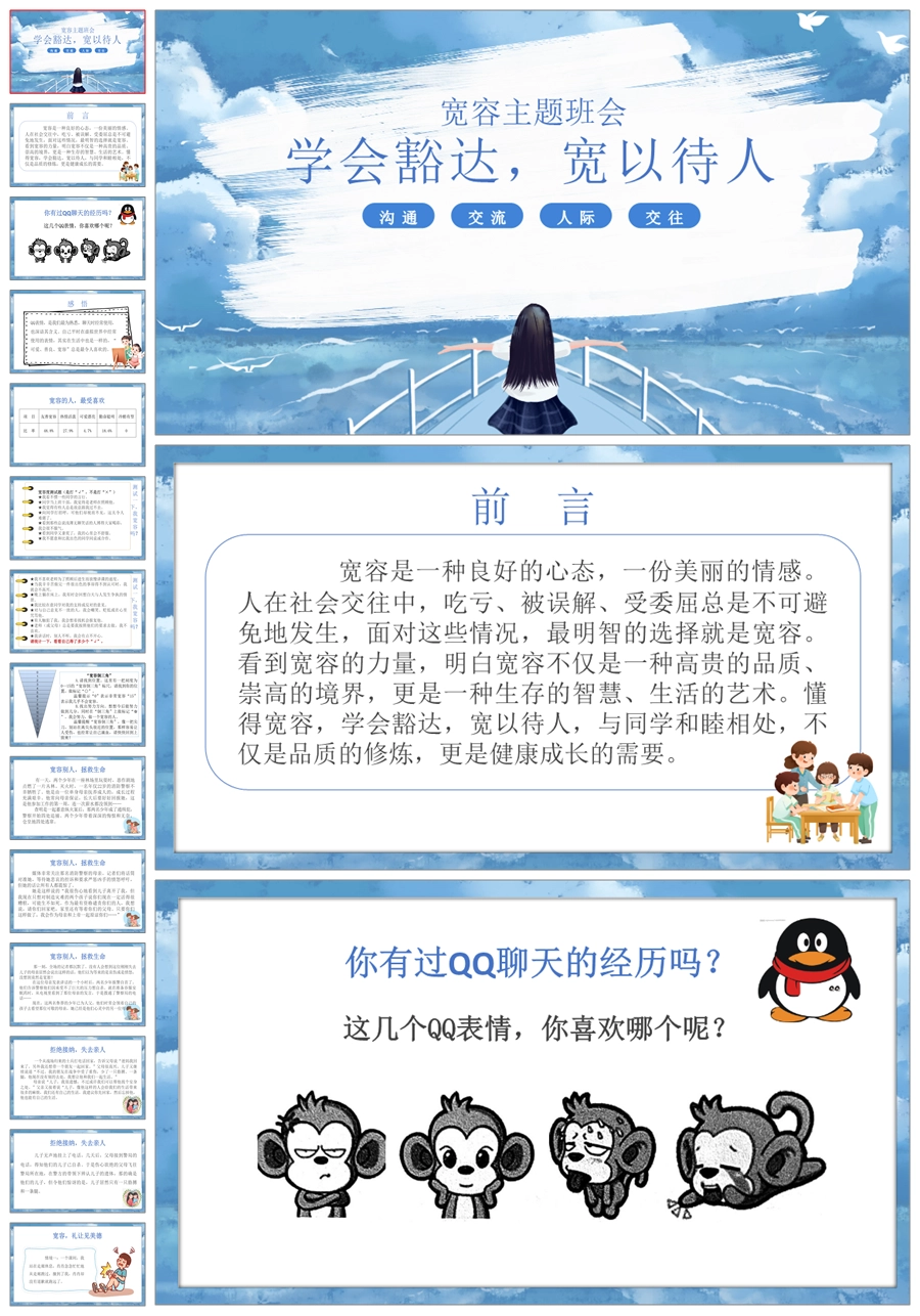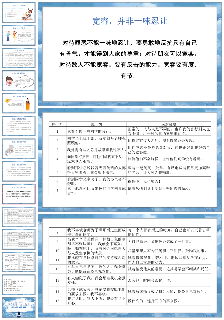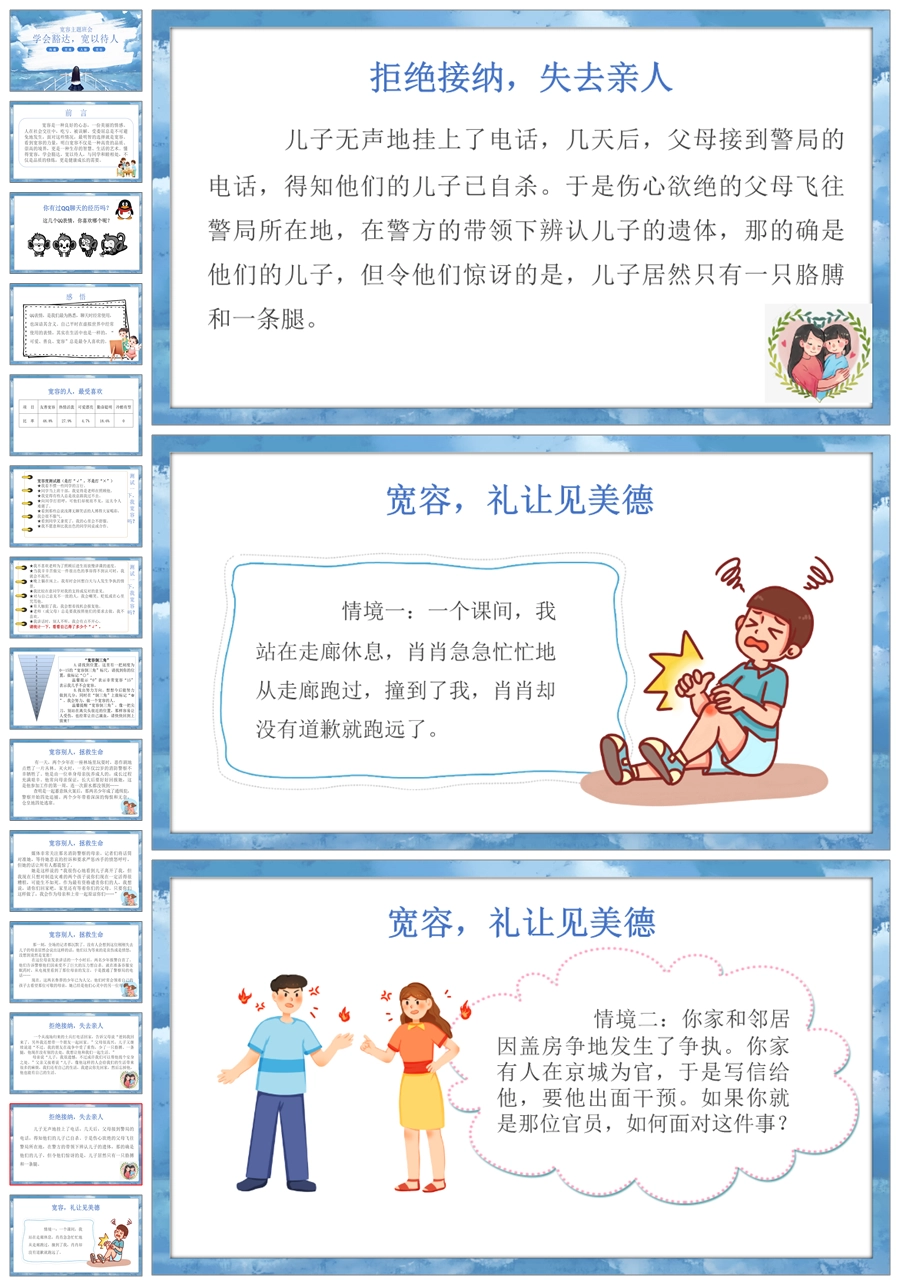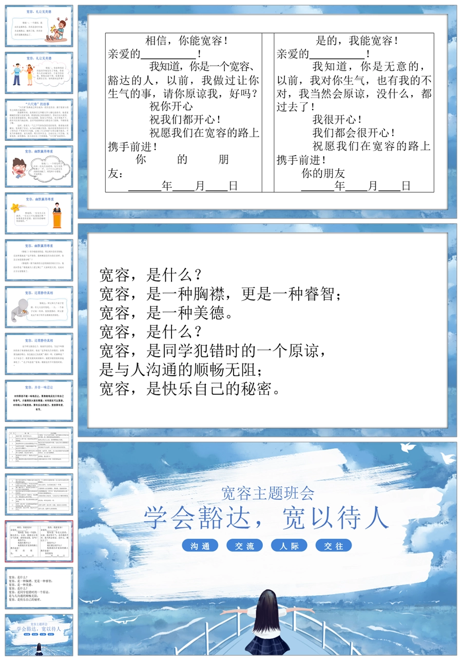 【8020】【宽容话题】《学会豁达,宽以待人》宽容主题教育班会PPT(课件+教案)