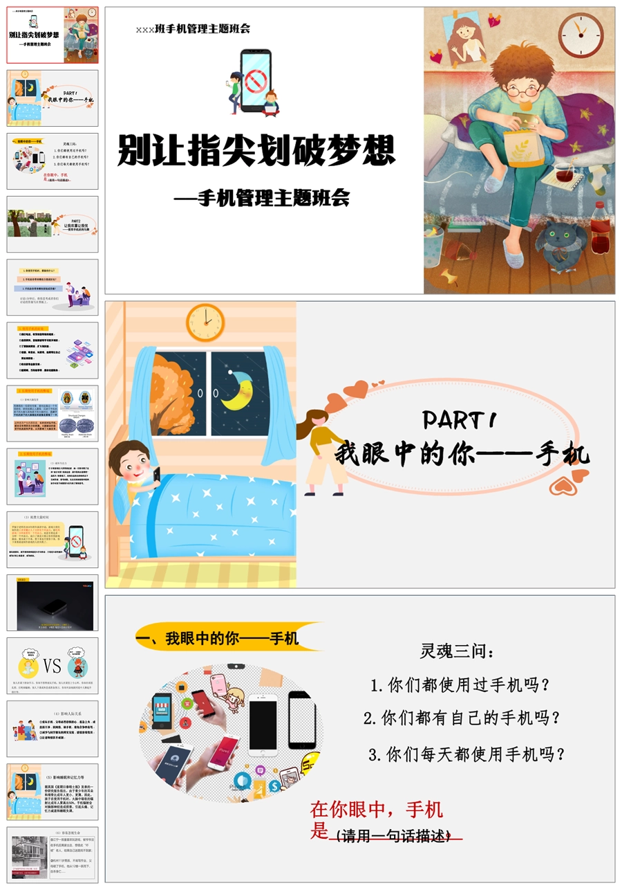 【8022】【主题班会】《别让指尖划破梦想》手机管理主题班会PPT(课件+教案+视频)