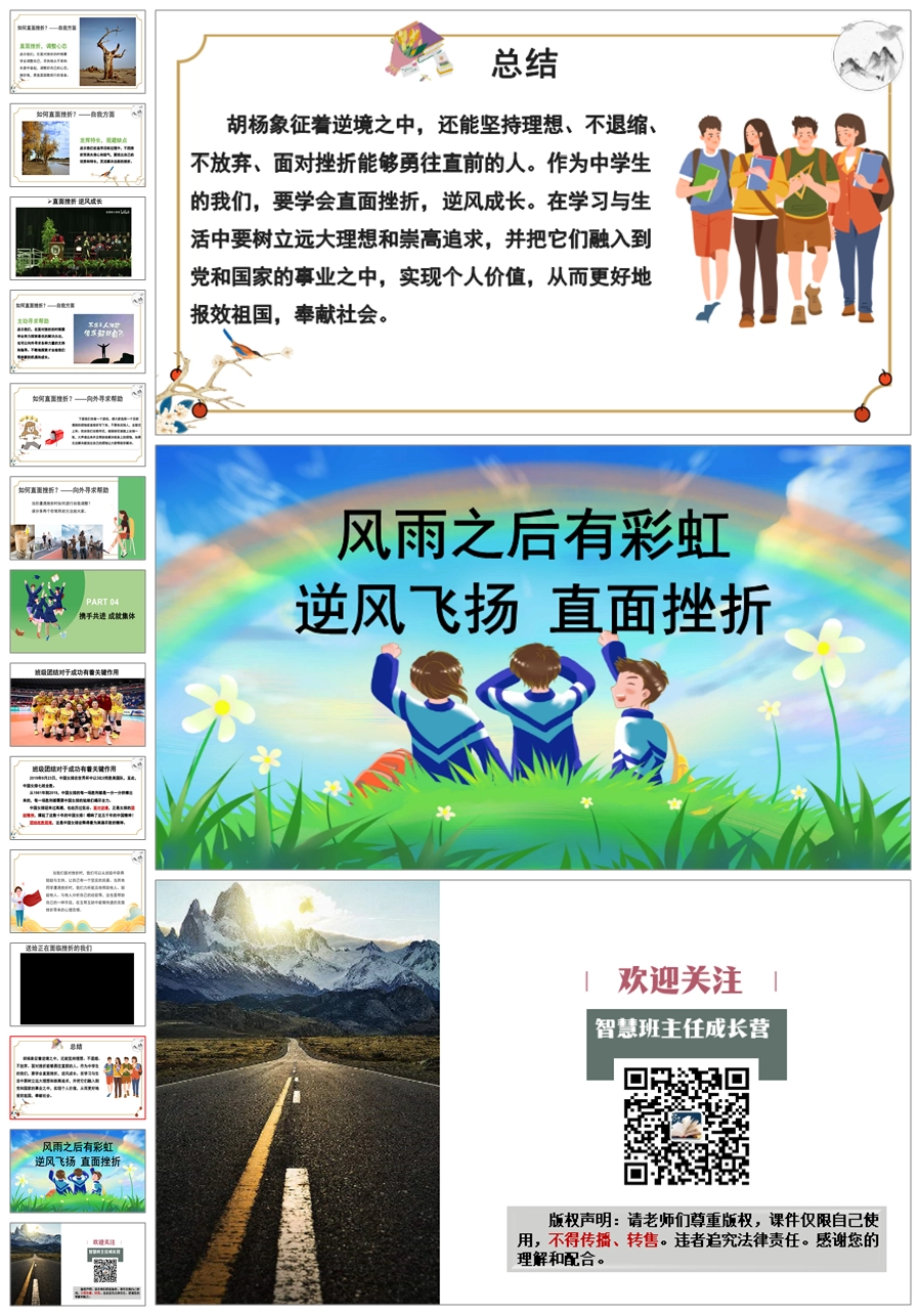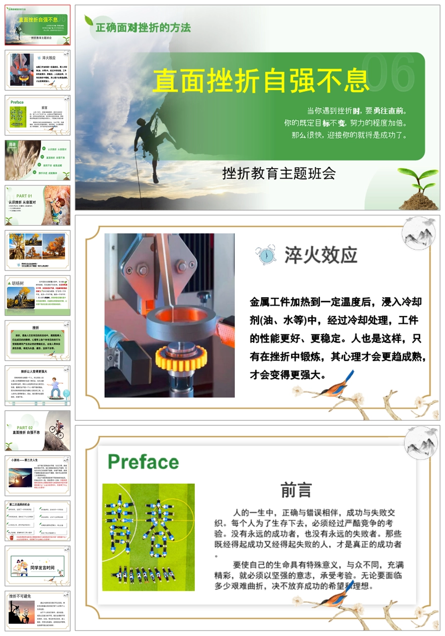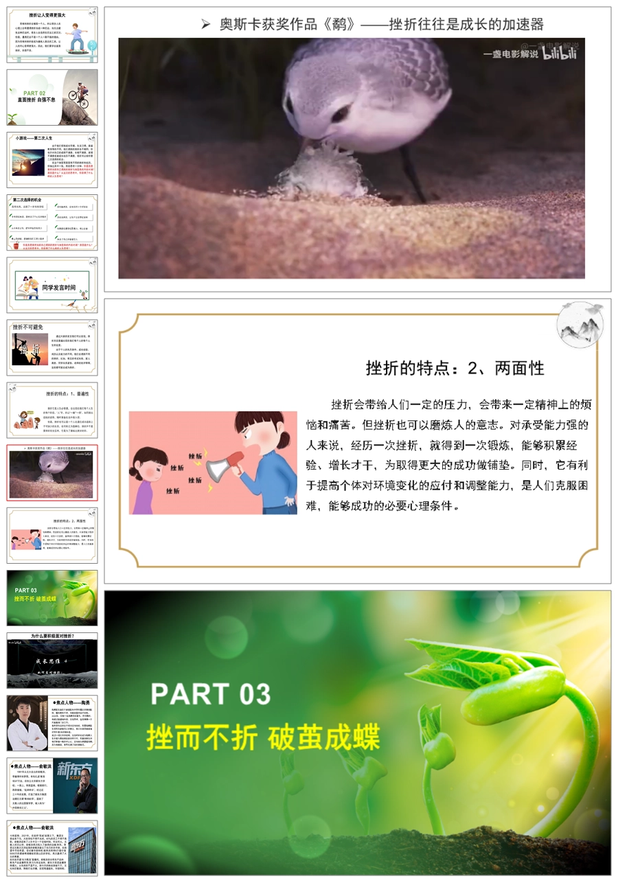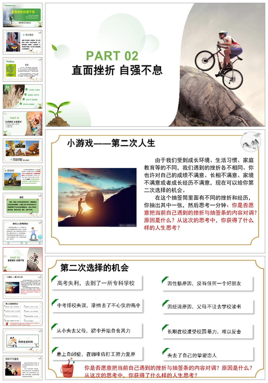 【8027】【挫折教育】《直面挫折自强不息》挫折教育主题班会课件PPT(课件+视频)