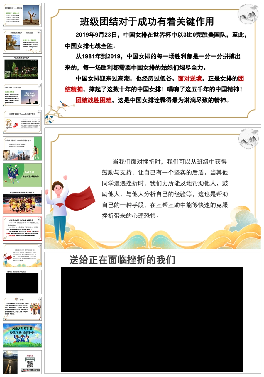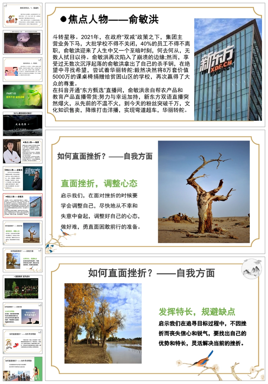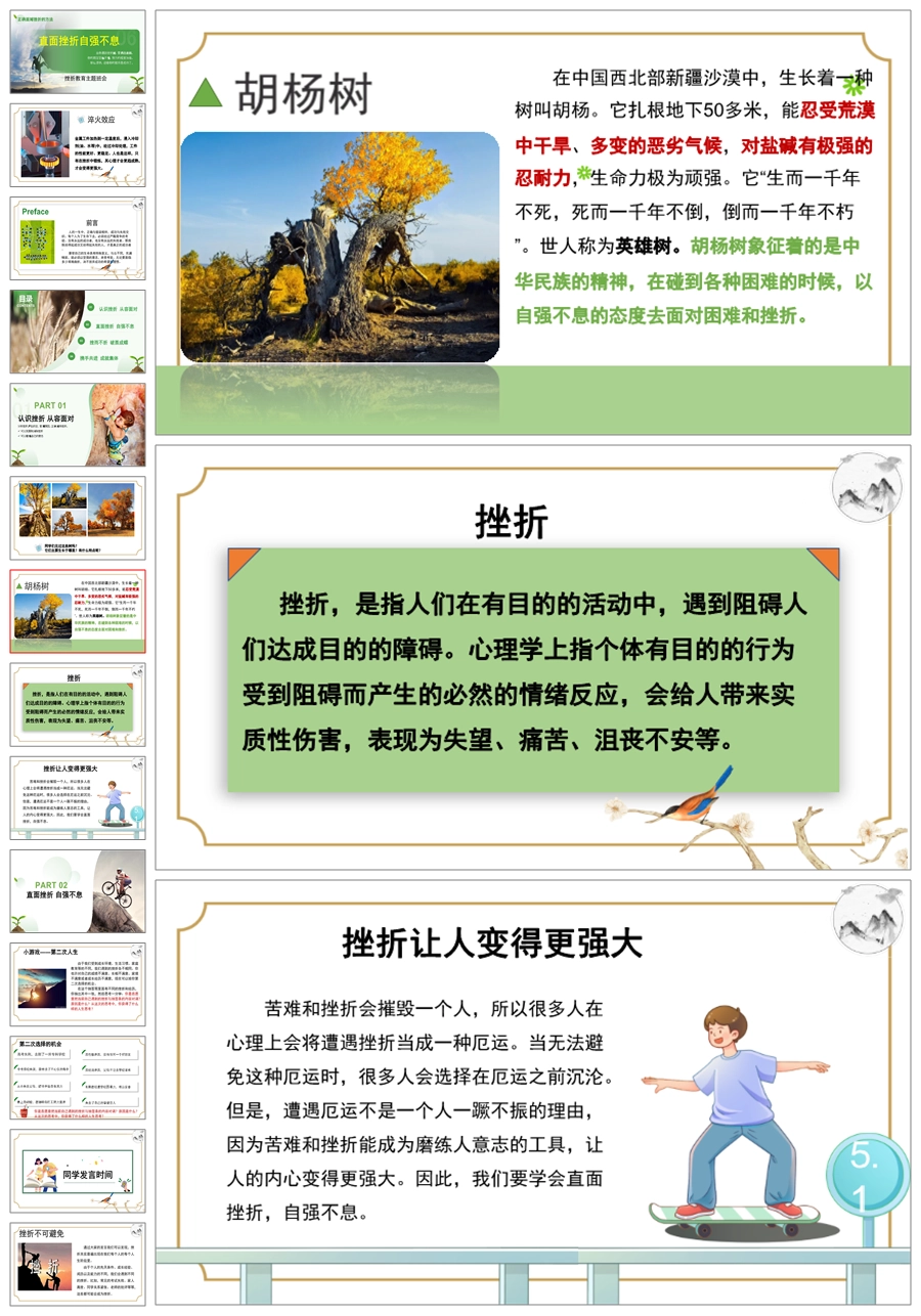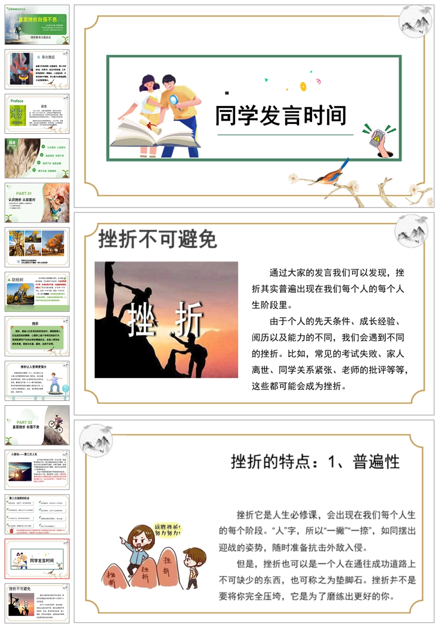 【8027】【挫折教育】《直面挫折自强不息》挫折教育主题班会课件PPT(课件+视频)