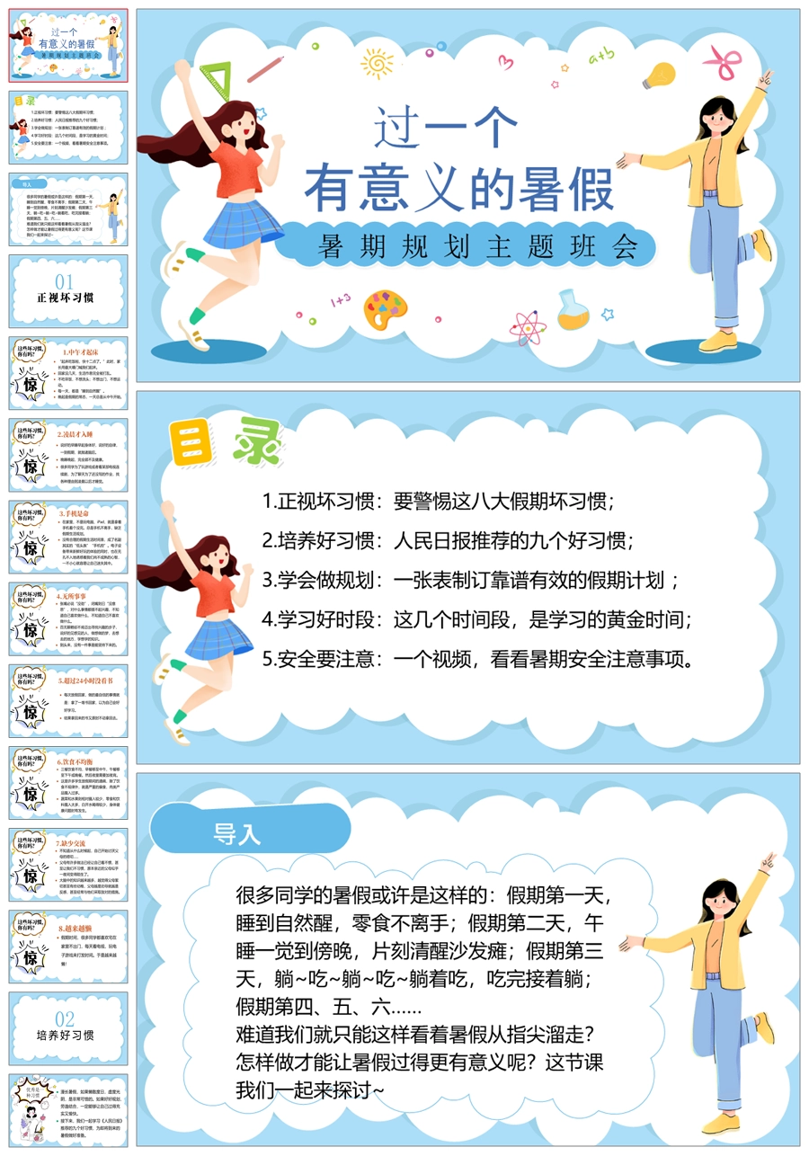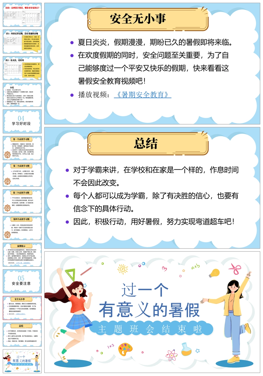 【8044】【暑假规划】《过一个充实的暑假》暑期规划主题班会PPT(课件+视频)