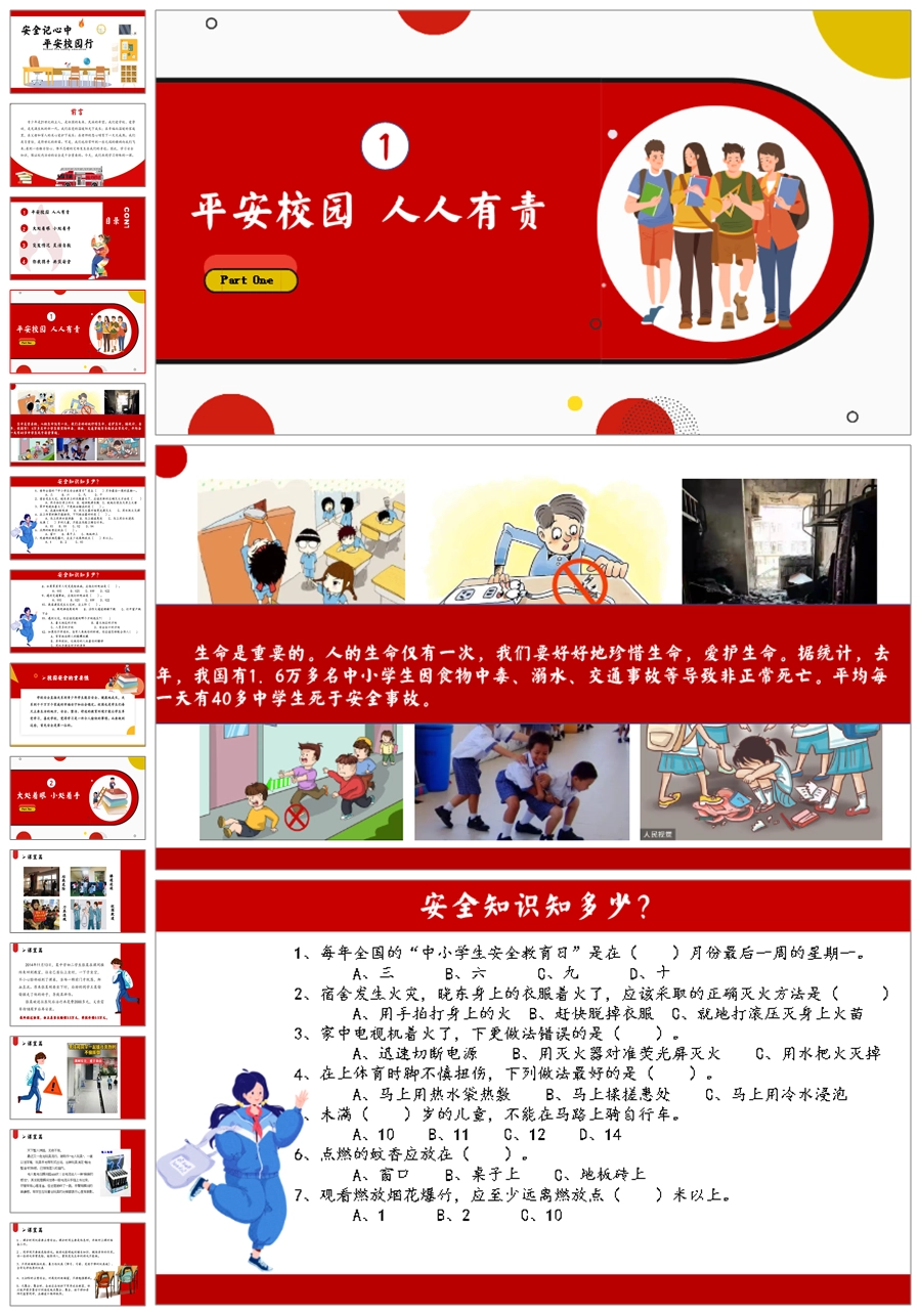【8055】【安全教育】《平安校园行》校园安全教育主题班会课件PPT(课件+视频)
