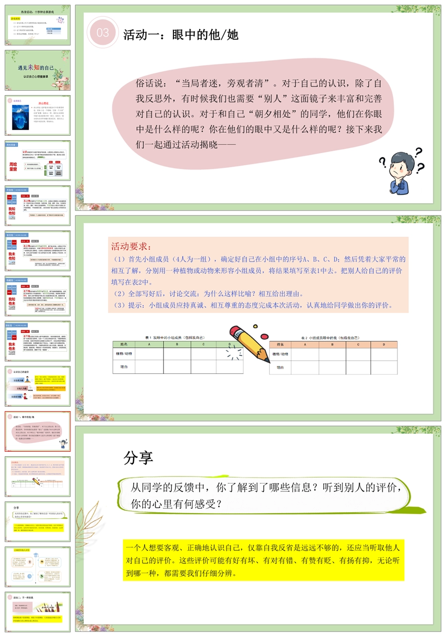 【8075】【心理健康】《遇见未知的自己》认识自己心理健康主题班会PPT课件(含课件教案视频资料)