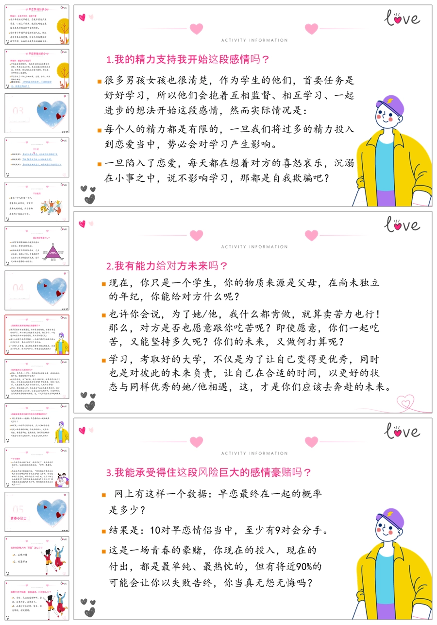 【8024】【早恋话题】《关于早恋那些事》早恋教育主题班会课件PPT(课件+视频)