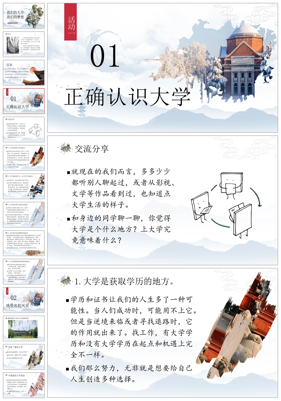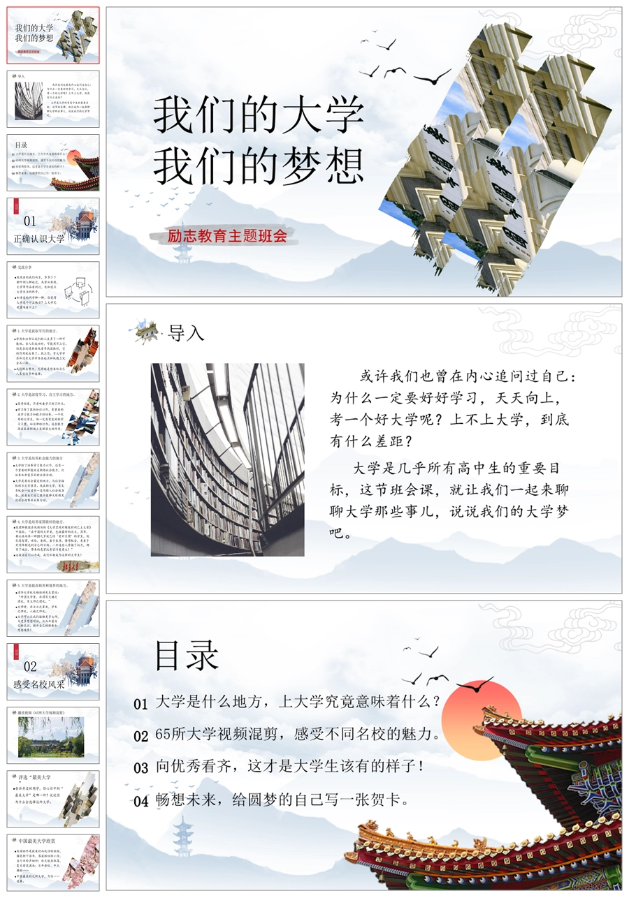 【8082】【励志教育】《我们的大学我们的梦想》目标理想教育主题班会PPT课件(含视频)