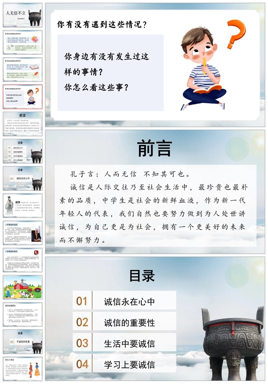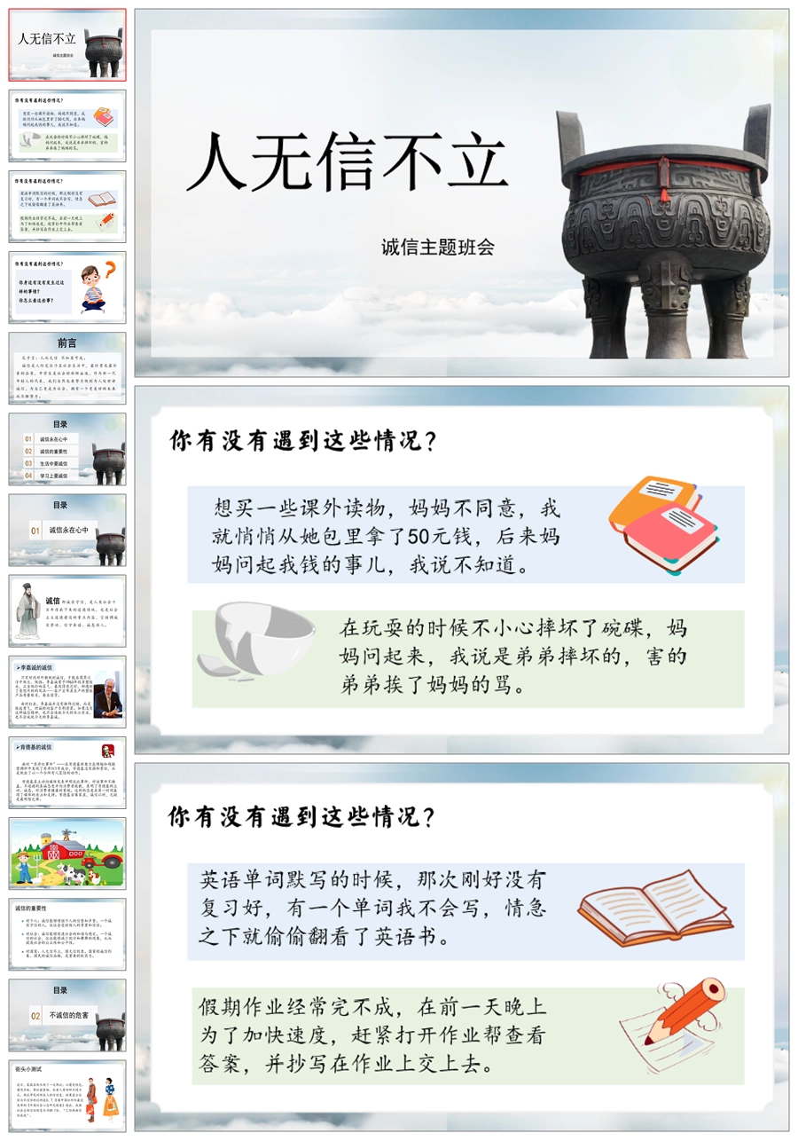【8086】【诚信话题】《人无信不立》诚信主题班会PPT课件(课件+视频)