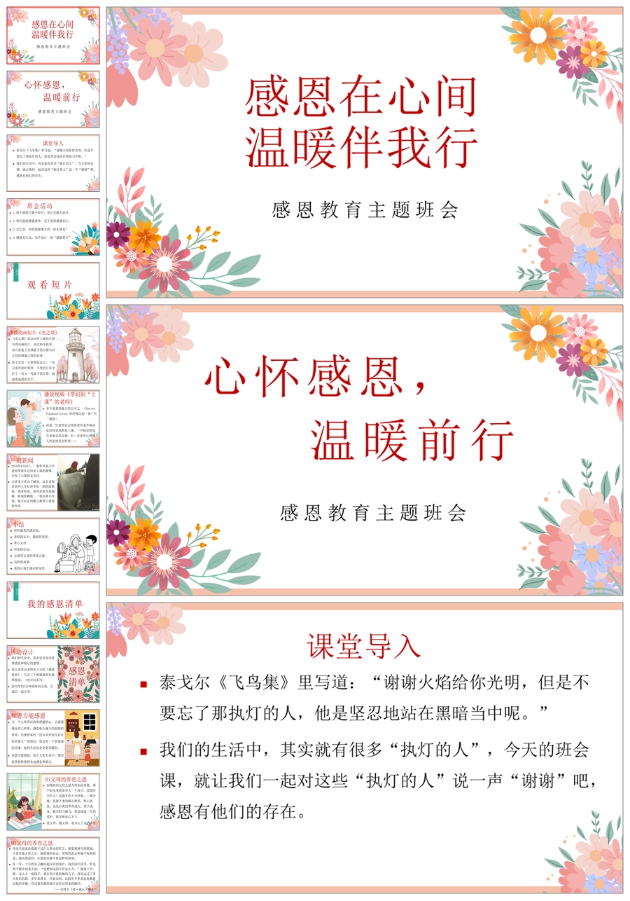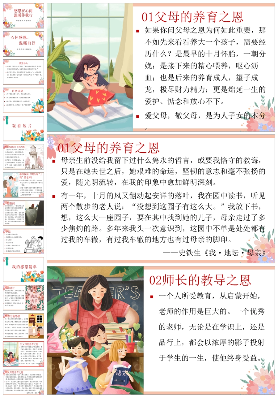 【8153】【感恩教育】《感恩在心间温暖伴我行》感恩父母感恩老师主题班会PPT(教案+课件+视频)