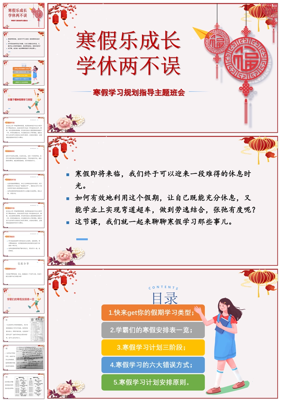 【8177】【寒假规划】《寒假乐成长学休两不误》寒假学习规划指导主题班会PPT(课件+讲稿)