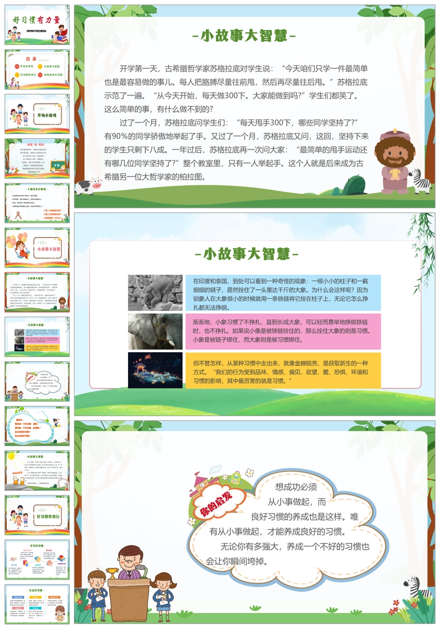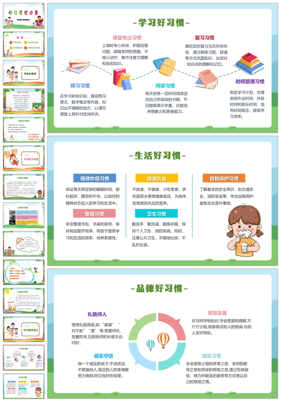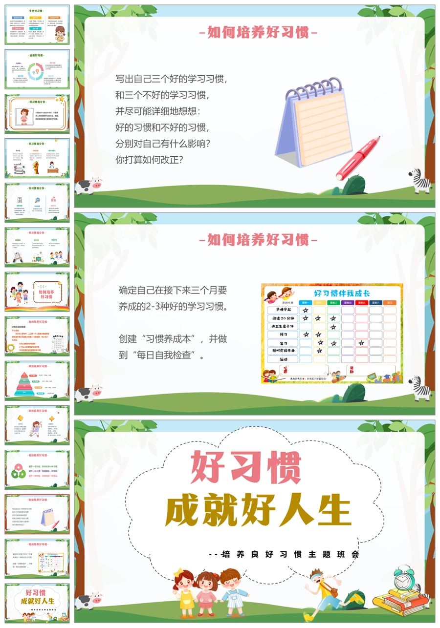 【8322】【习惯养成】《好习惯有力量》养成良好习惯主题班会PPT(课件+教案+发言稿)