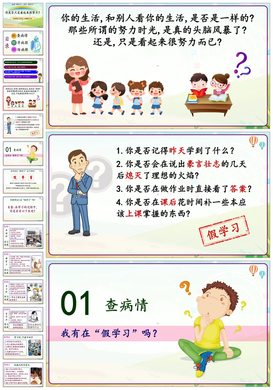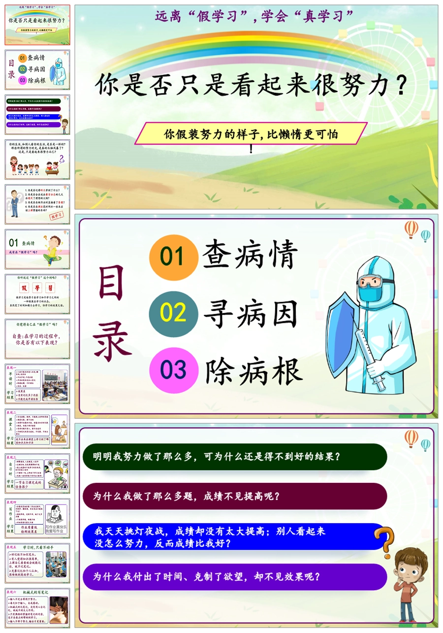 【8324】【学习习惯】《你是否只是看起来很努力》远离假学习学会真学习主题班会PPT(课件+教案)