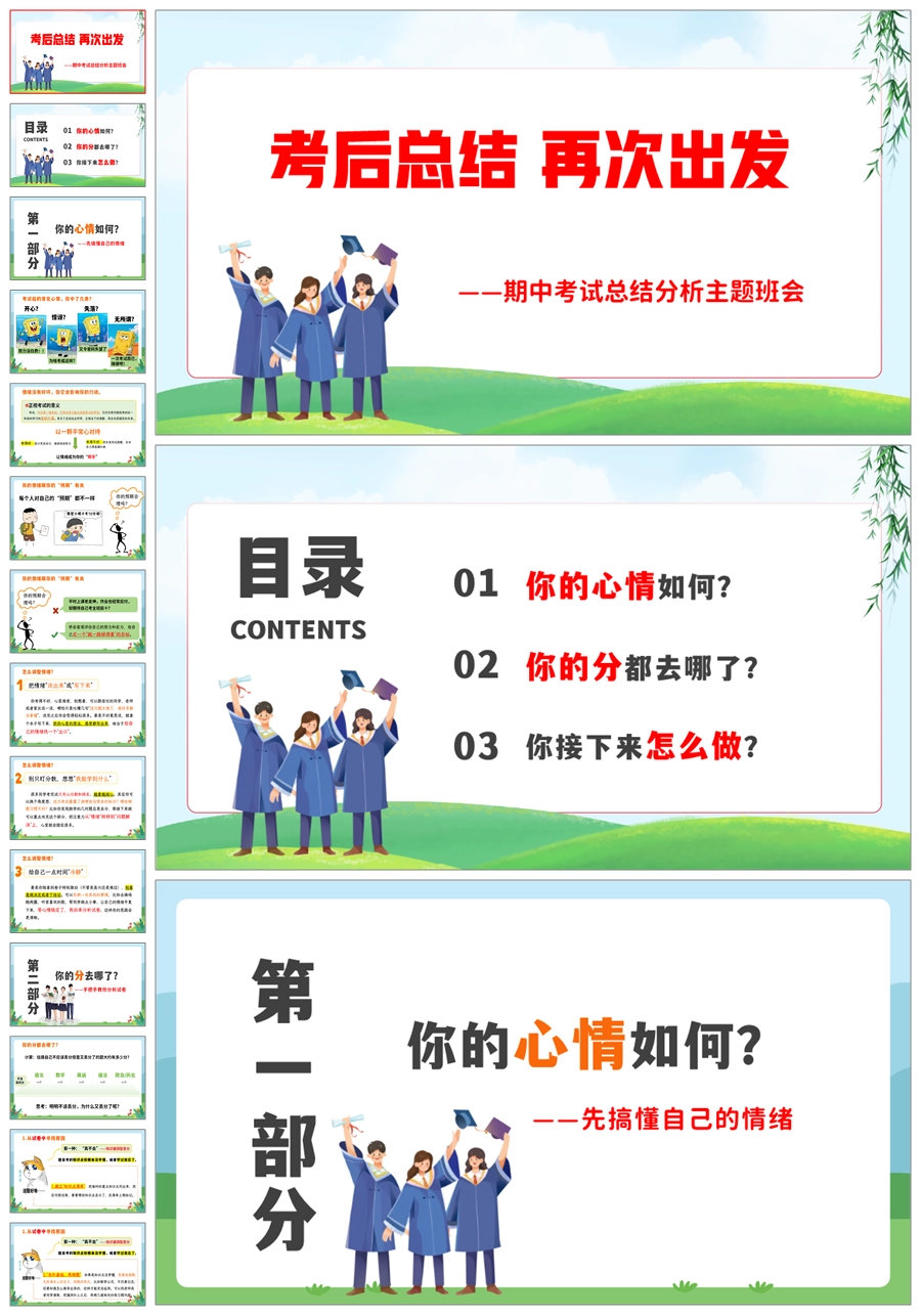 【8327】【考试总结】《考后总结再次出发》期中考试总结分析主题班会PPT(课件+教案+反思清单)