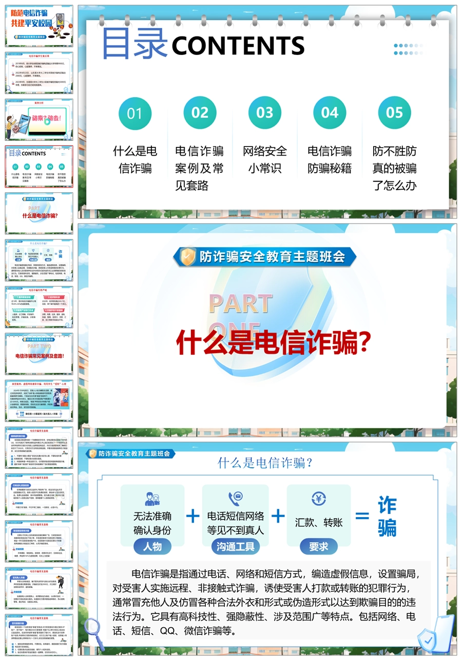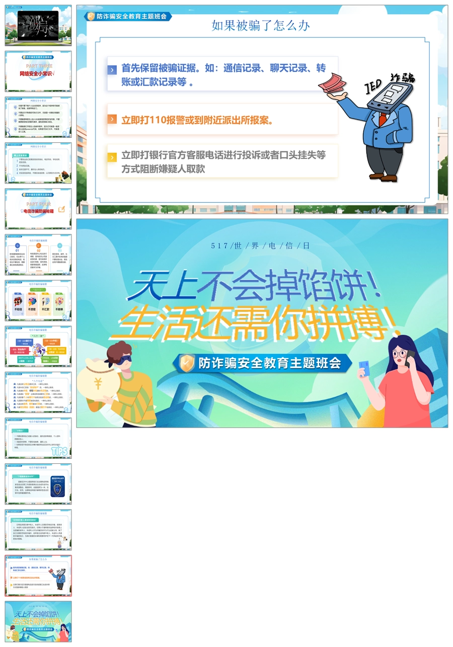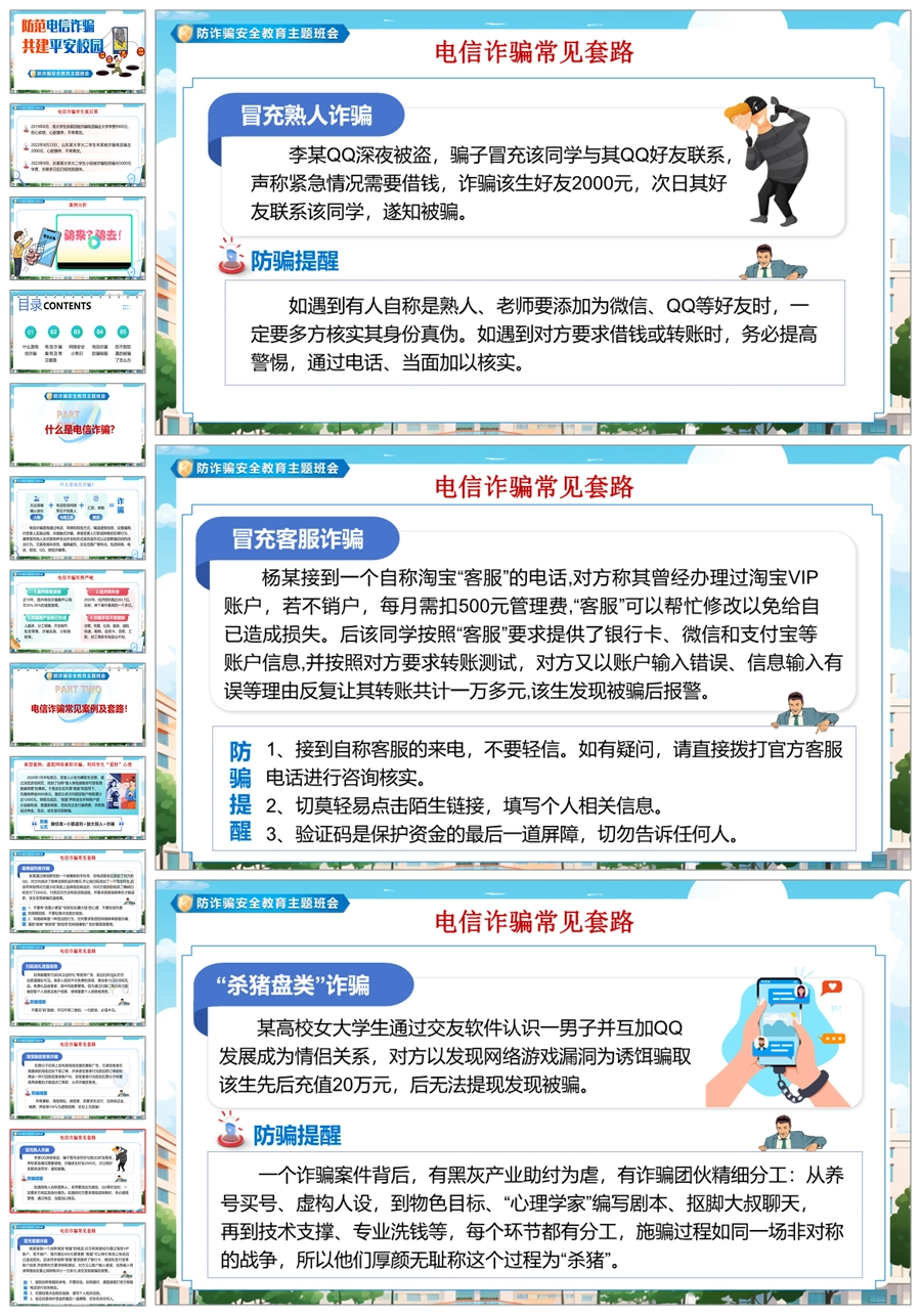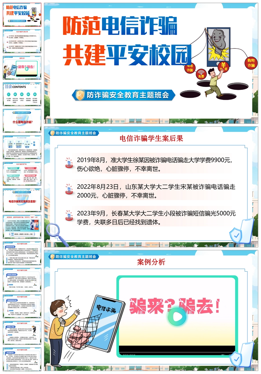 【8345】【安全教育】《预防电信诈骗共建平安校园》预防电信诈骗安全教育主题班会PPT(课件+视频+教案)