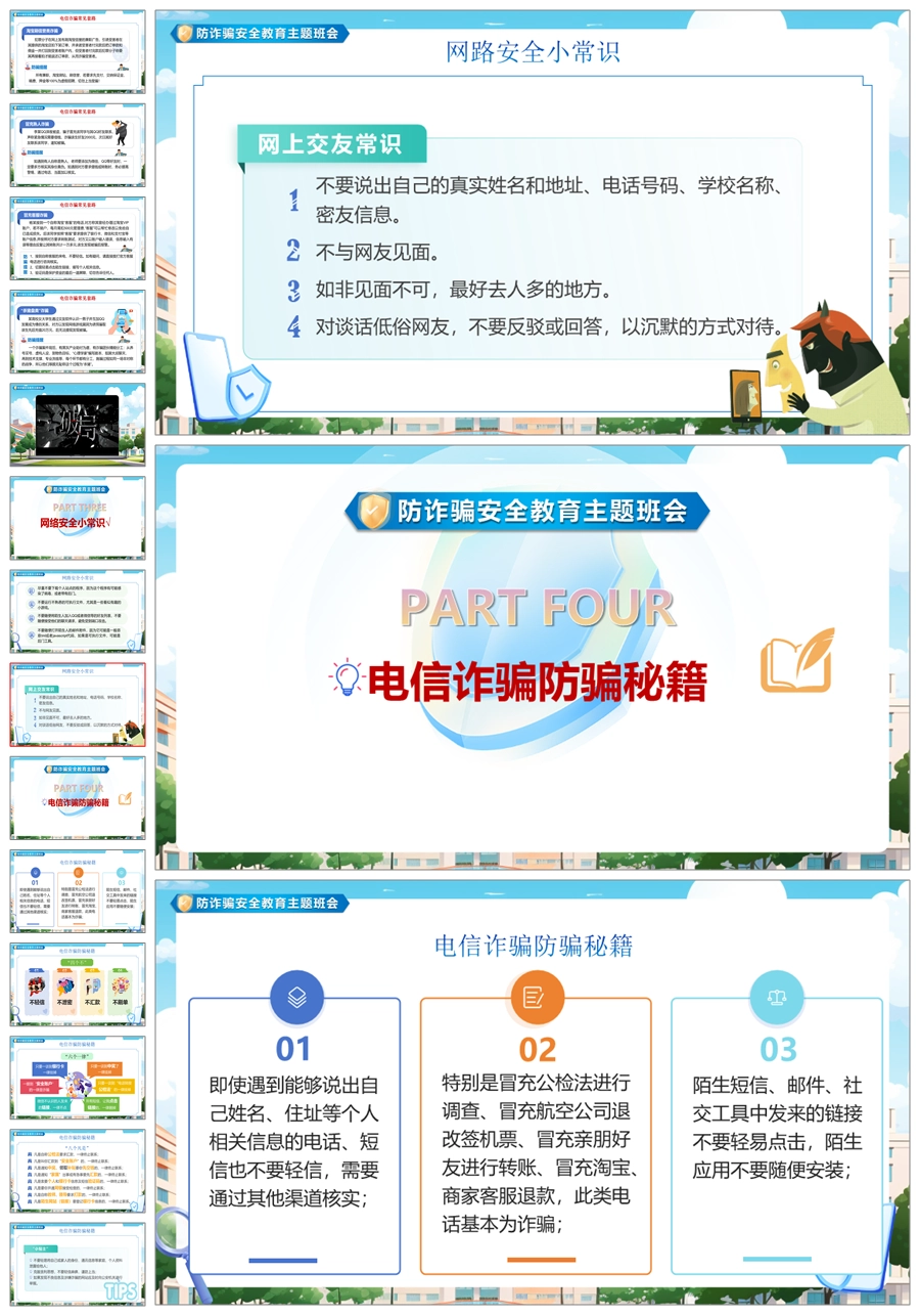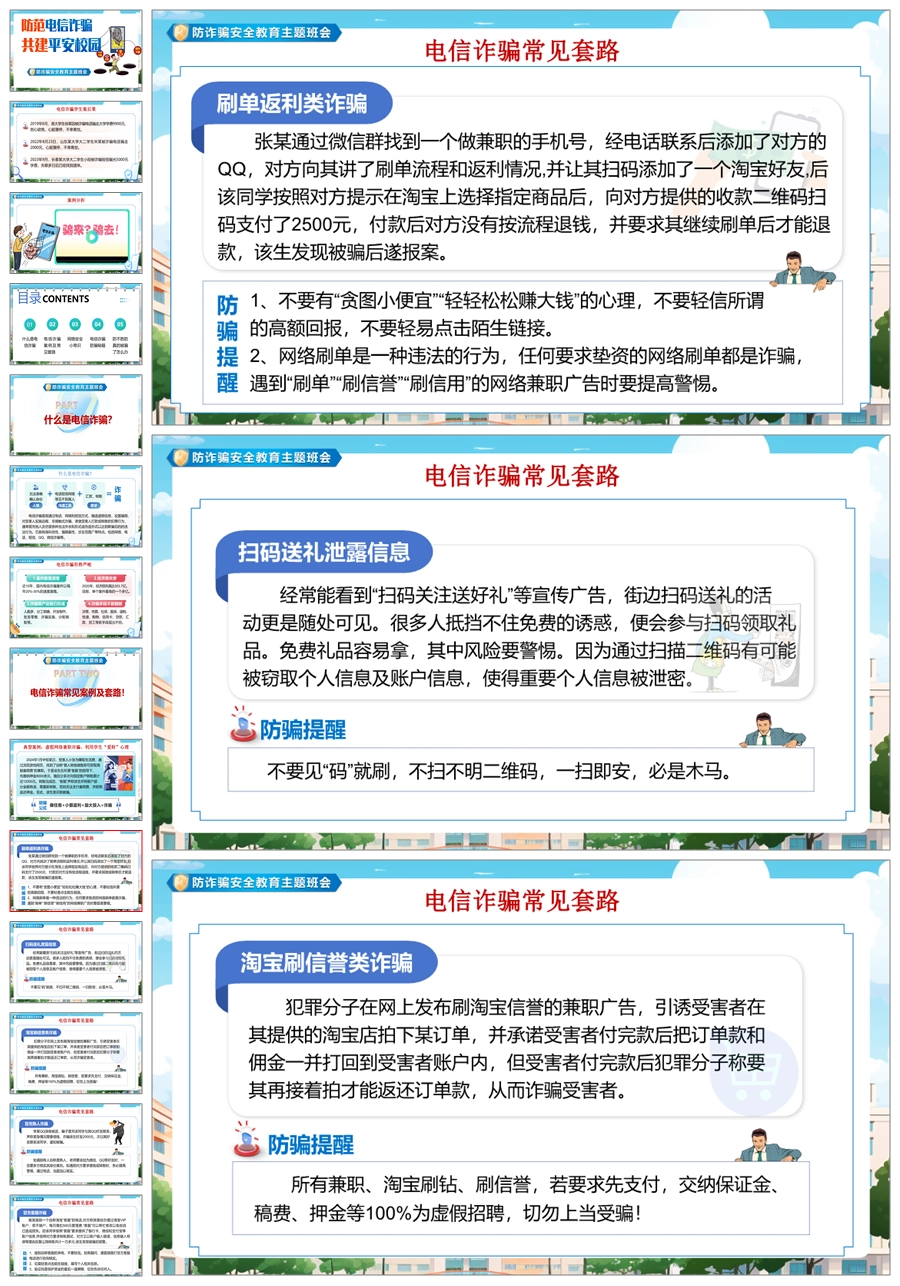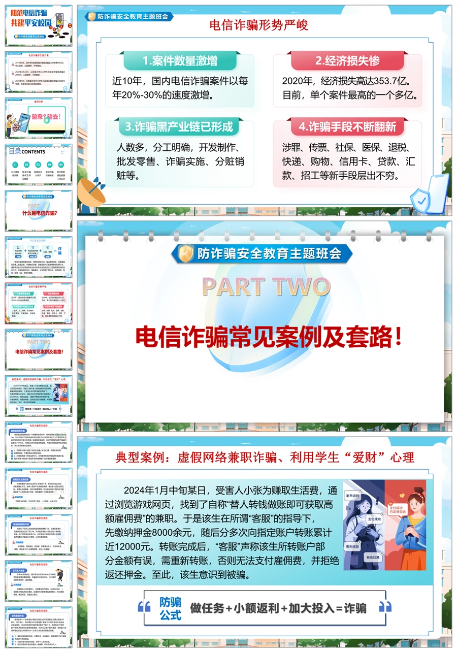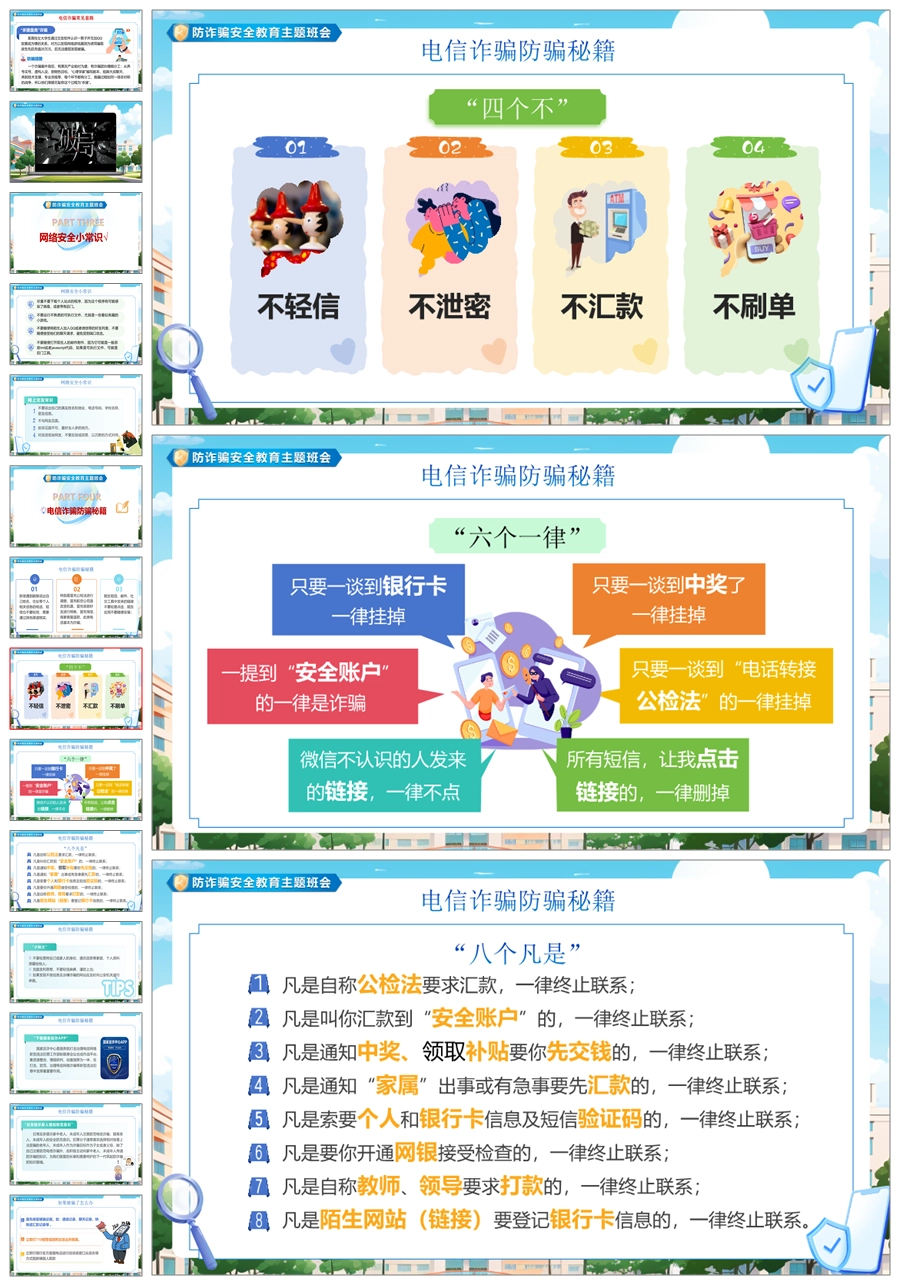 【8345】【安全教育】《预防电信诈骗共建平安校园》预防电信诈骗安全教育主题班会PPT(课件+视频+教案)