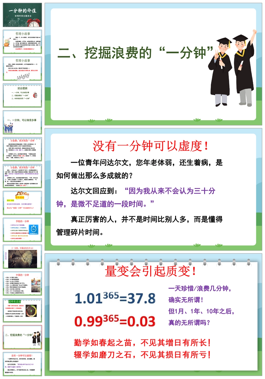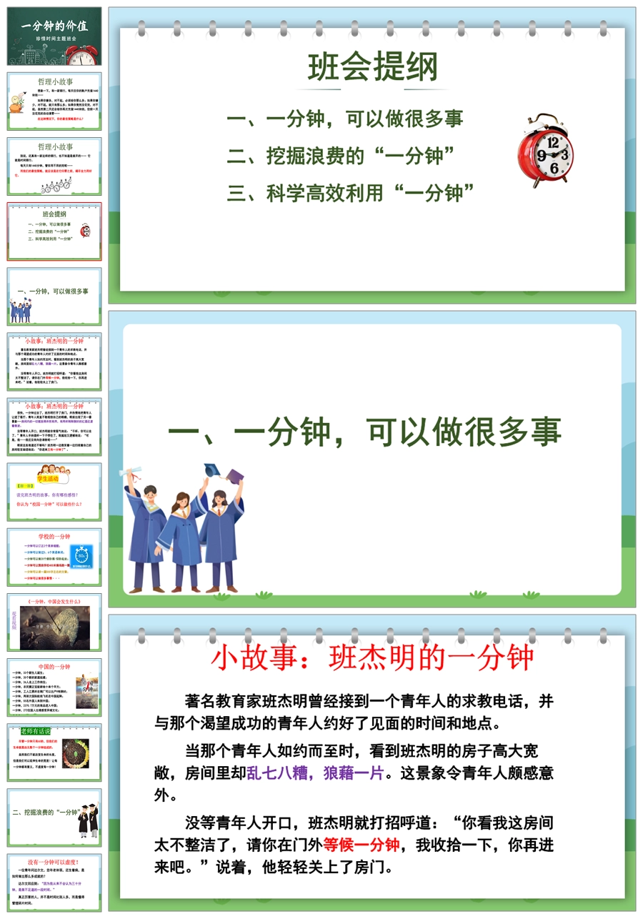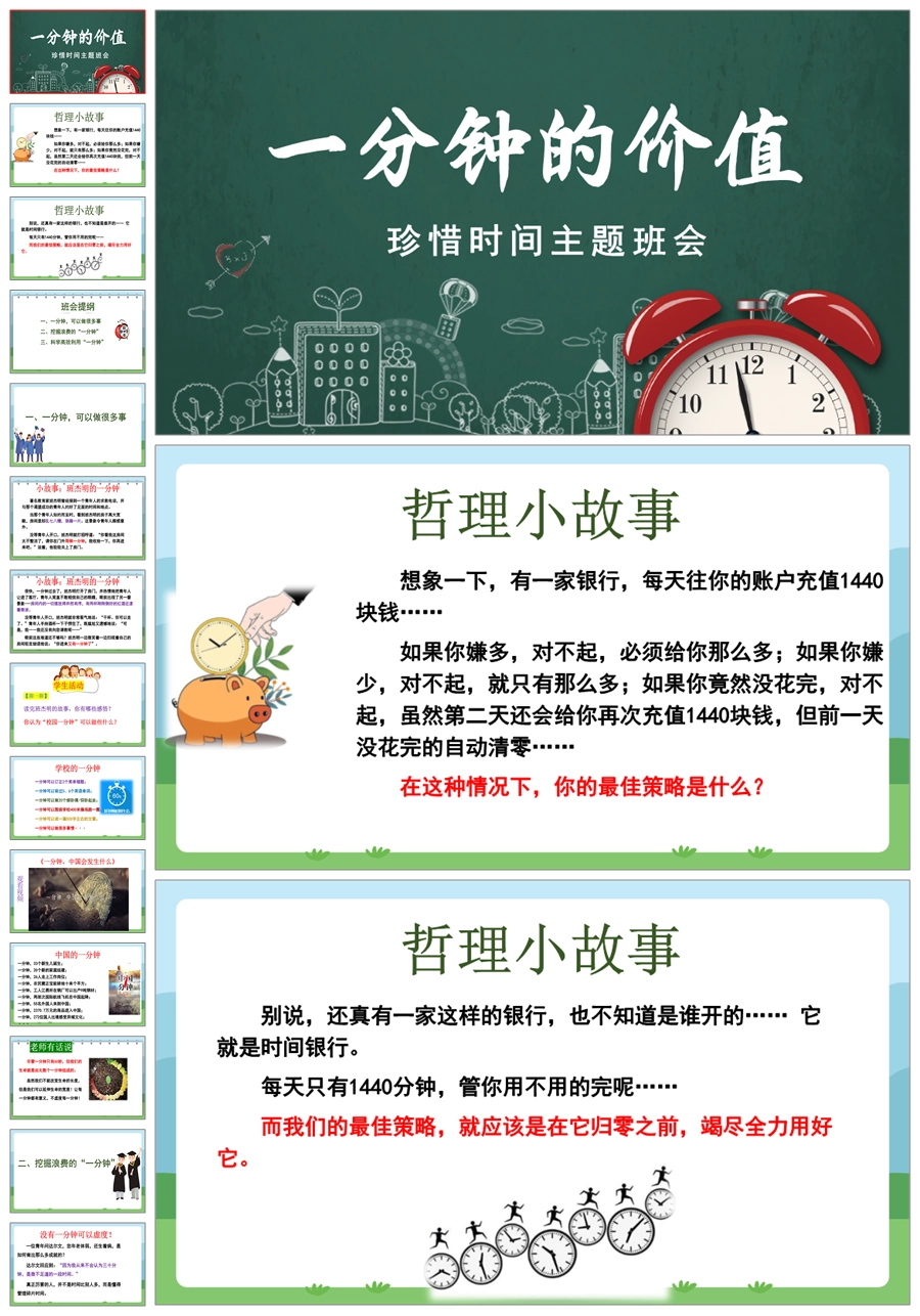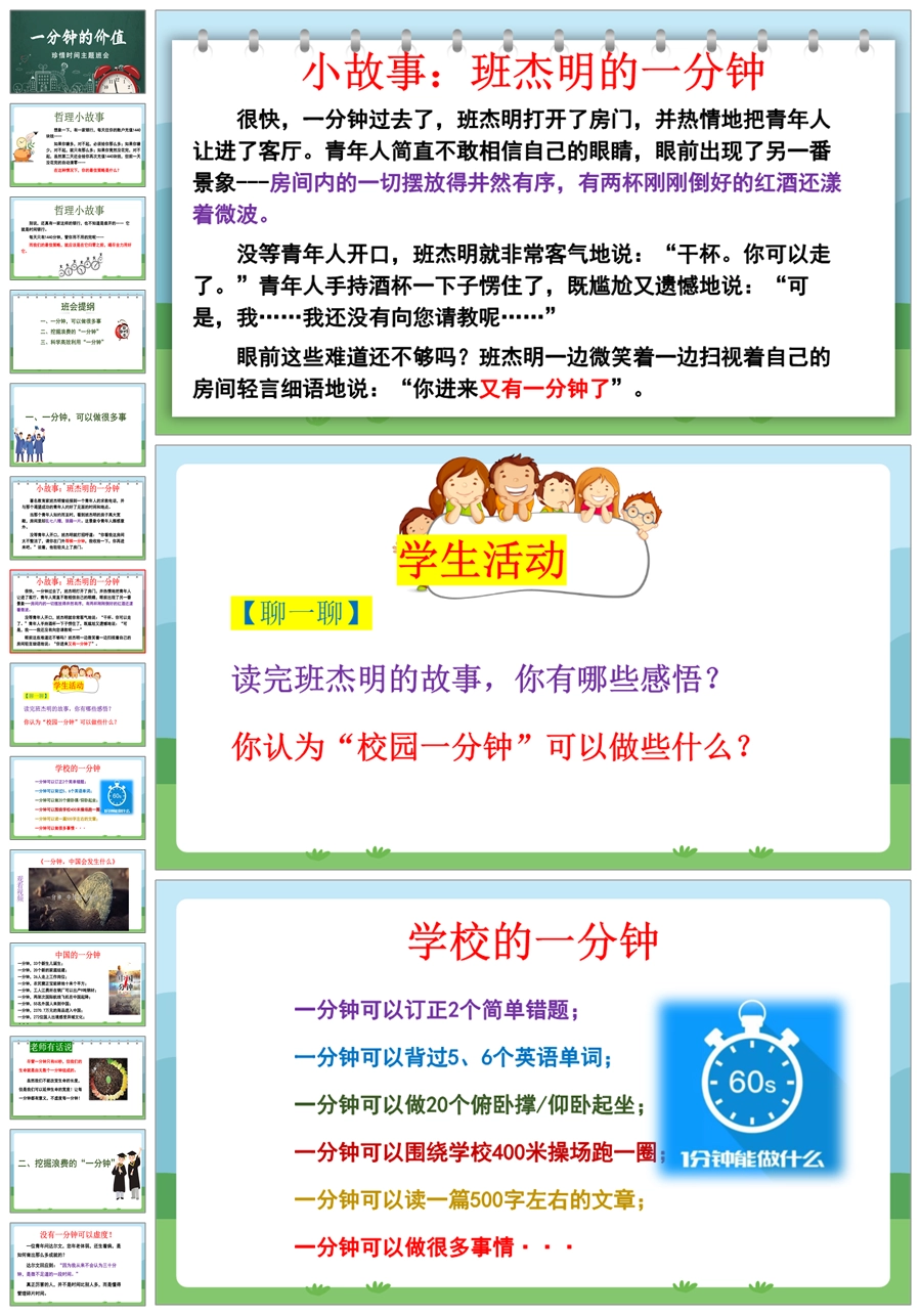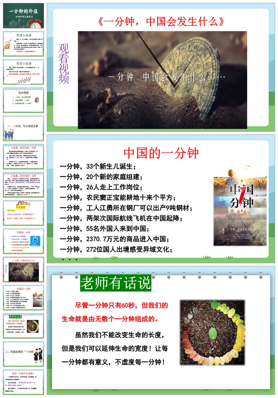 【8348】【惜时班会】《一分钟的价值》珍惜时间高效学习主题班会PPT(课件+教案+视频)