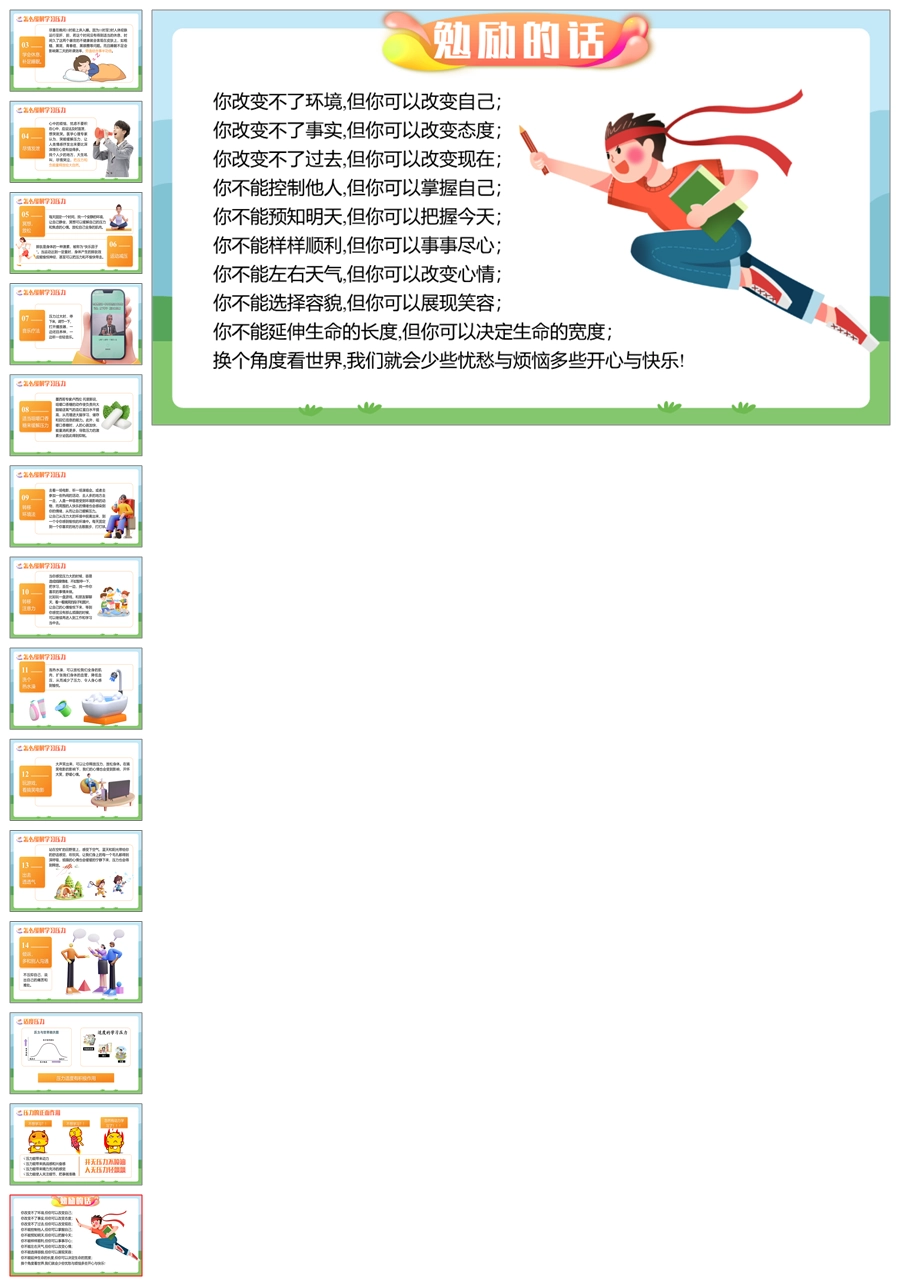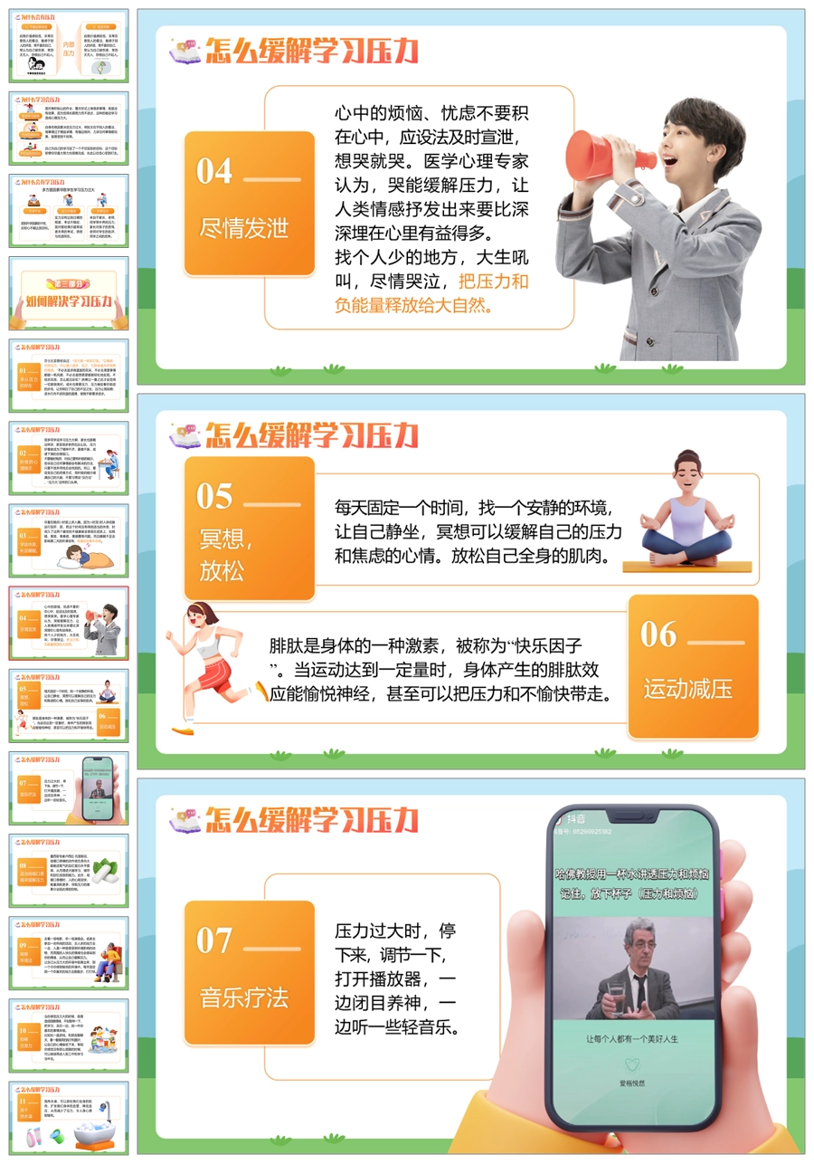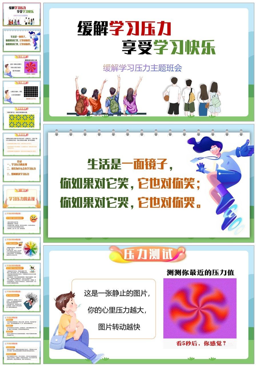 【8353】【心理健康】《缓解学习压力享受学习快乐》缓解压力主题班会PPT(课件+教案)
