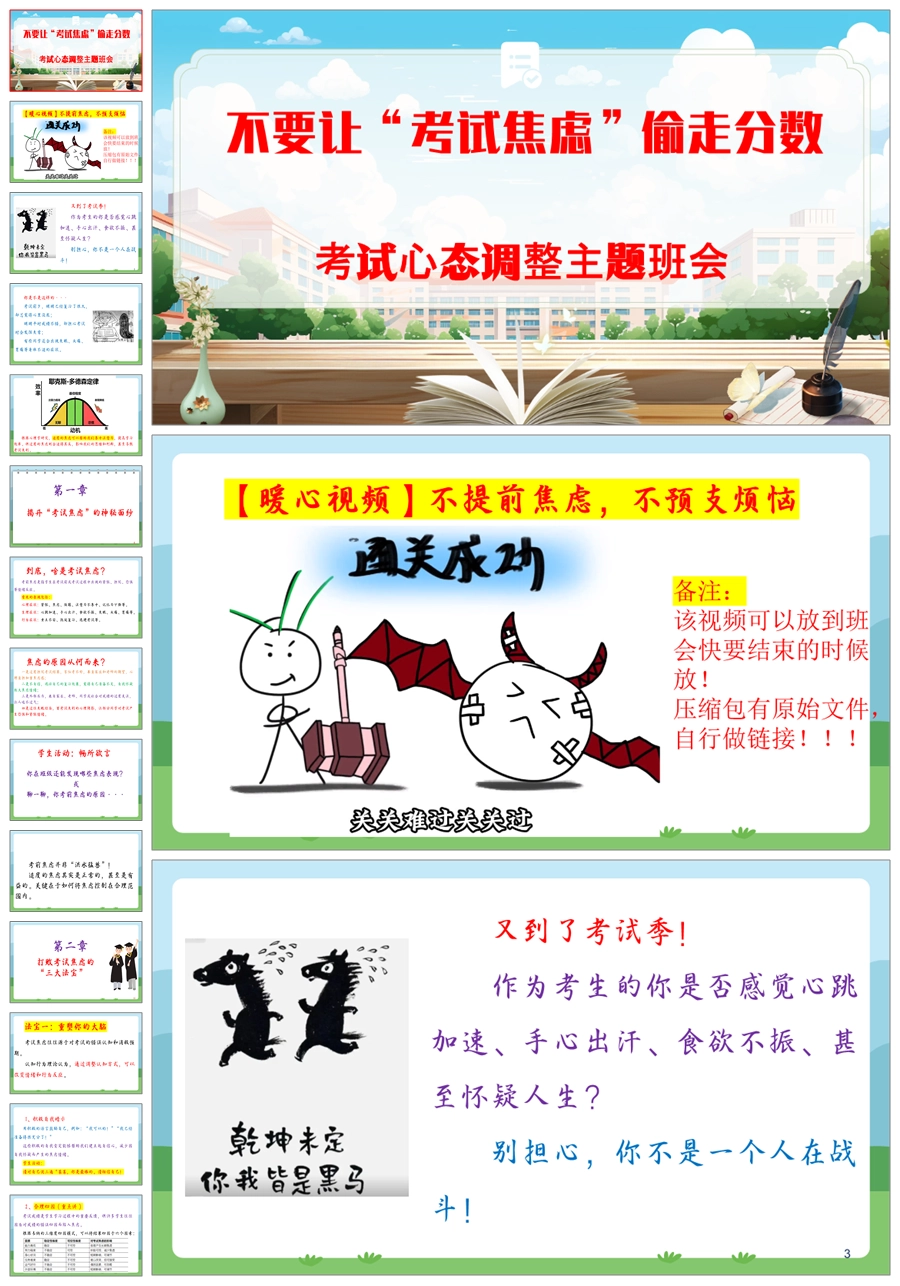 【8361】【考试心态】《不要让考试焦虑偷走分数》考试心态调整主题班会PPT(课件+发言稿+视频)