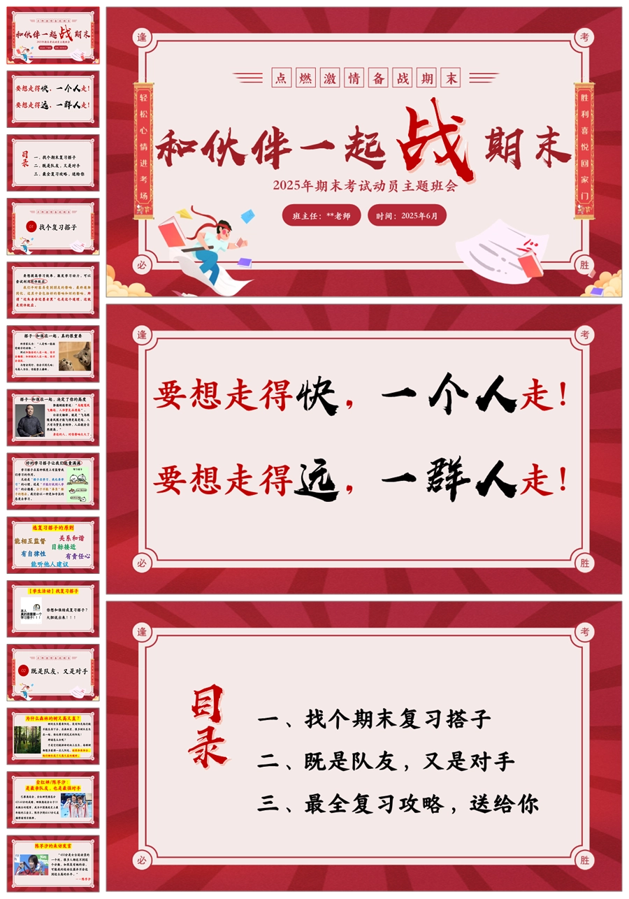 【8418】【期末动员】《和小伙伴一起战期末》期末考试动员主题班会PPT(课件+教案+挑战书)
