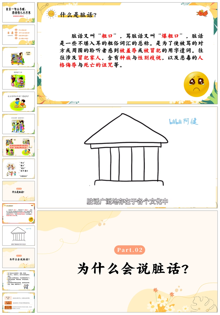 【8560】《良言一句三冬暖恶语伤人六月寒》拒绝脏话文明用语主题班会ppt课件+教案