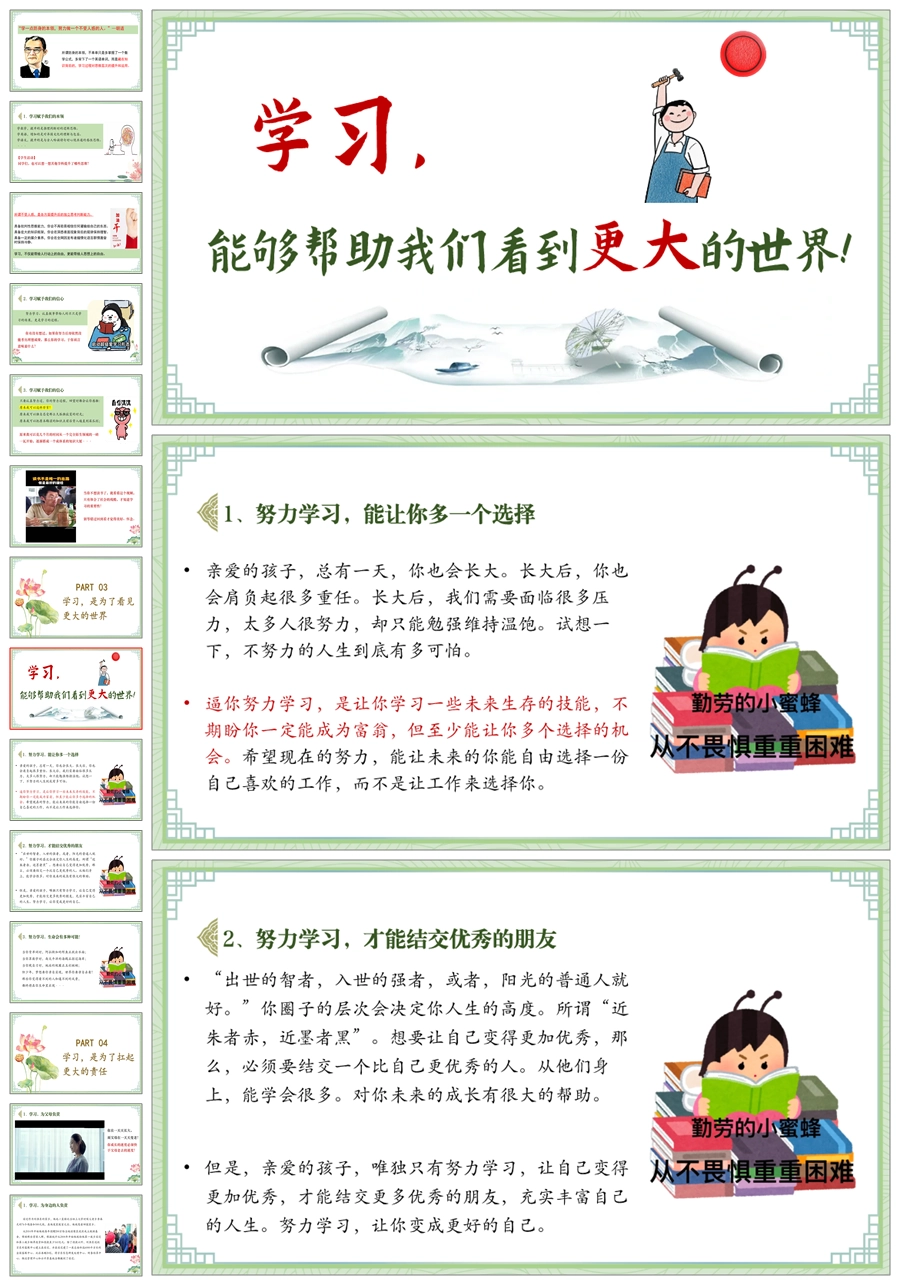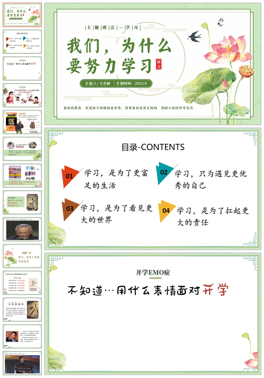 【8563】《我们为什么要努力学习》励志主题班会ppt课件+教案