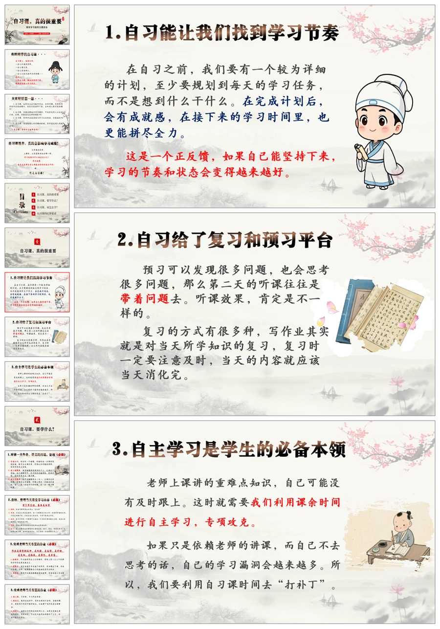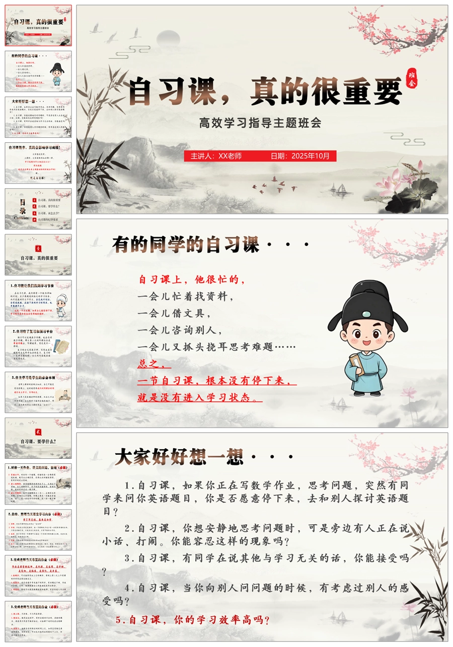 【8568】《自习课真的很重要》主题班会ppt课件+逐字稿