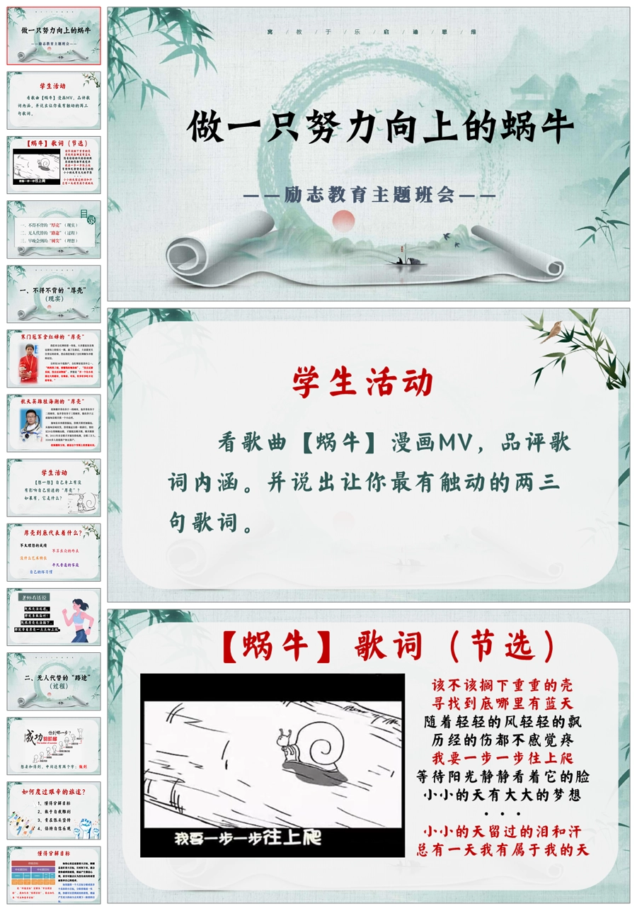 【8570】《做一只努力向上的蜗牛》励志主题班会ppt课件+教案