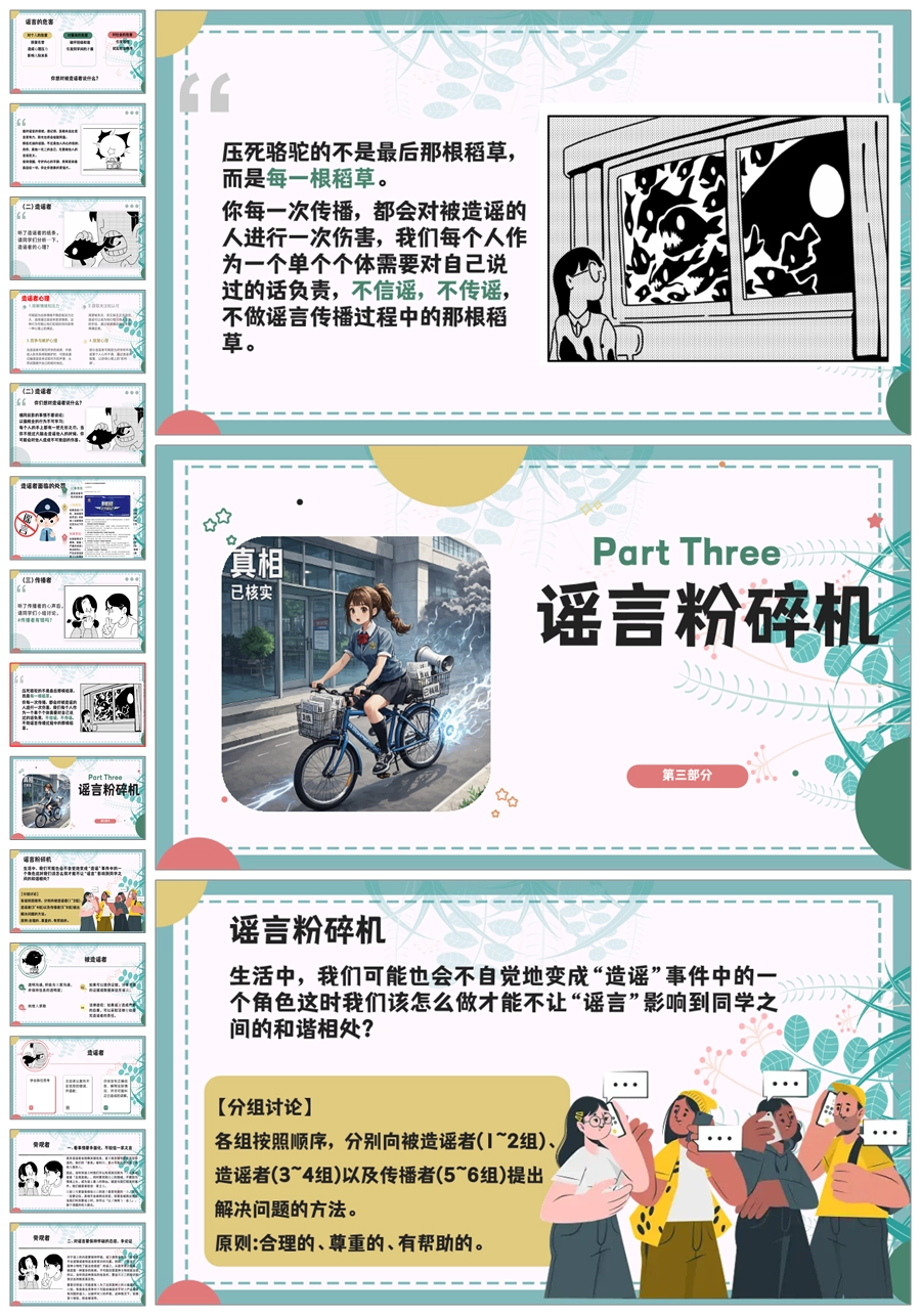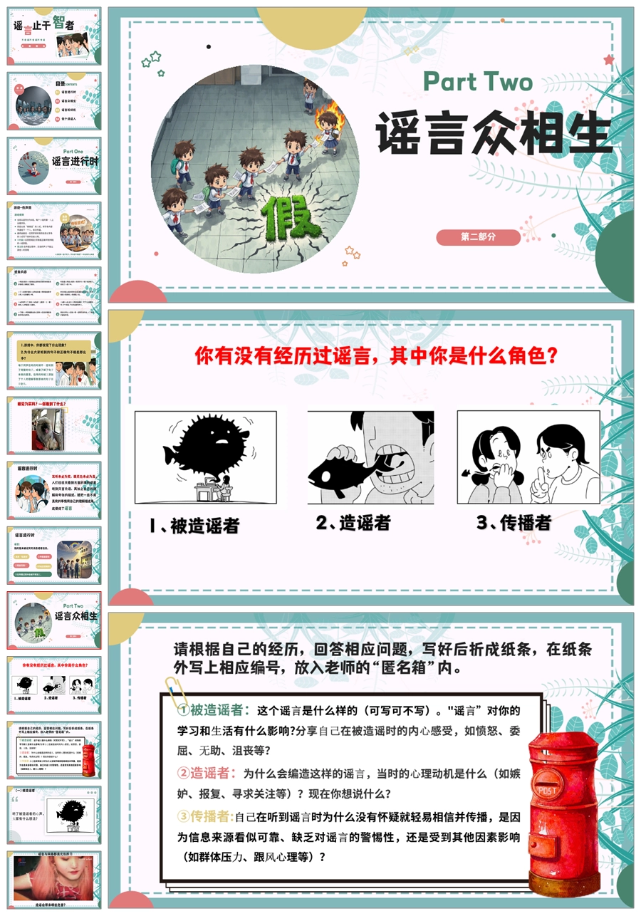 【8593】《谣言止于智者》拒绝谣言主题班会ppt课件+教案+视频