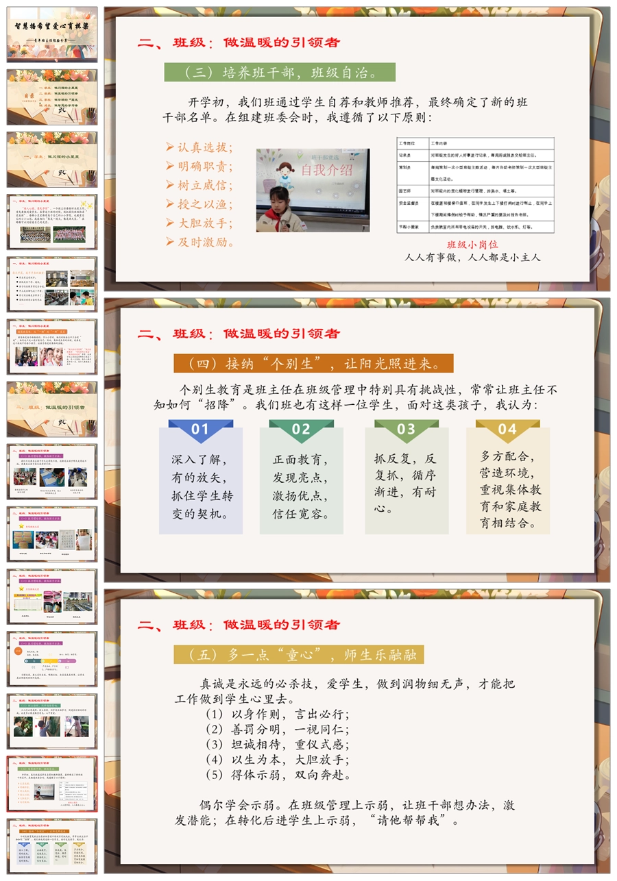 【8222】【经验交流】《智慧播希望爱心育栋梁》班主任工作经验交流PPT(课件+发言稿)