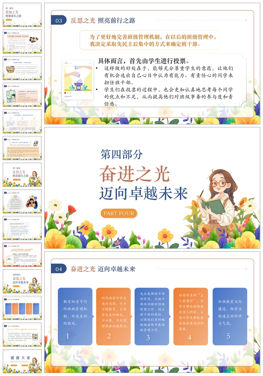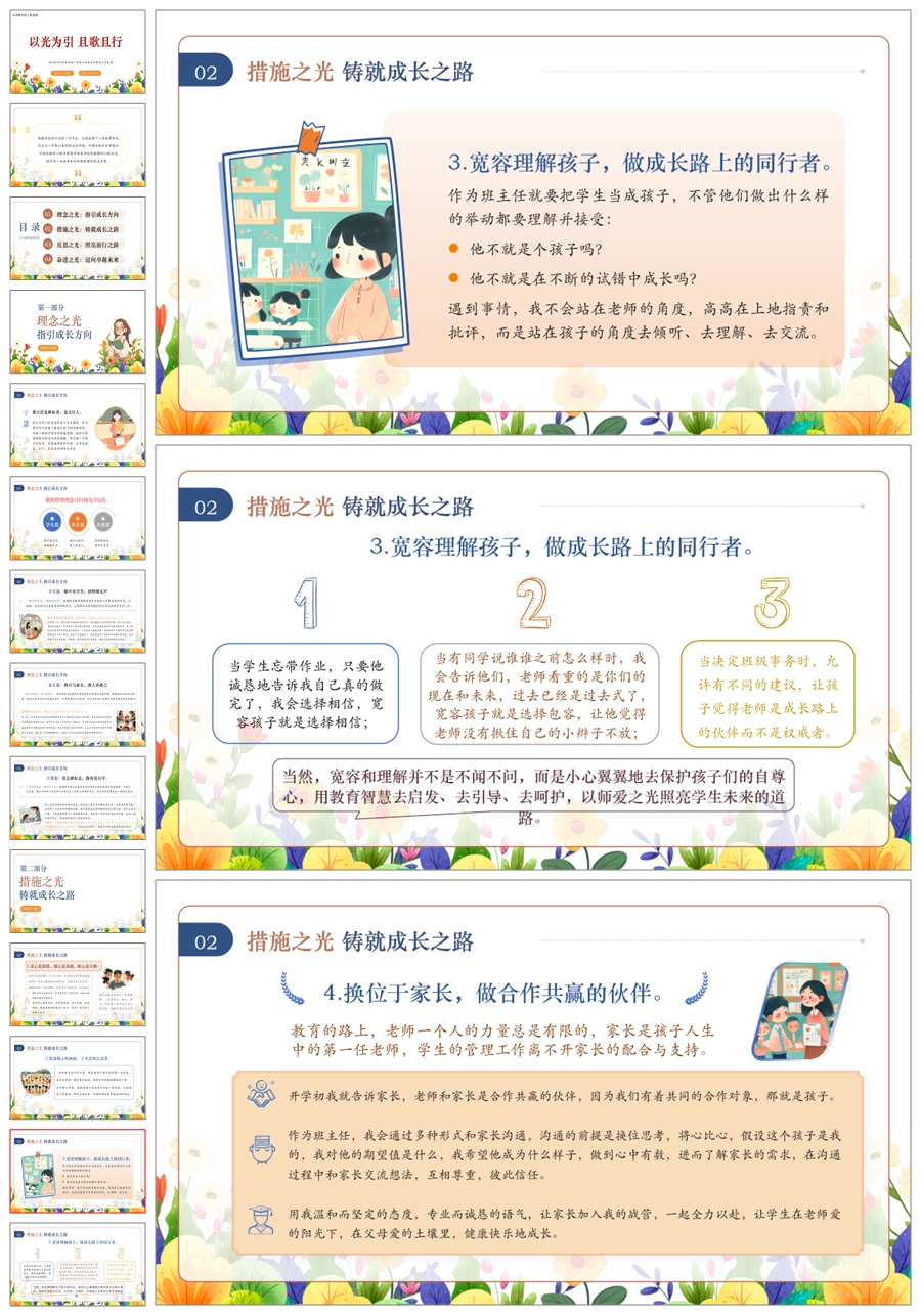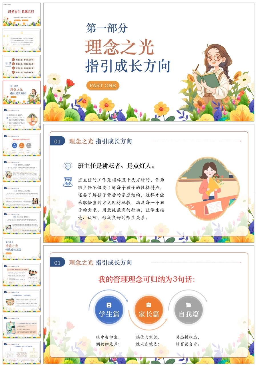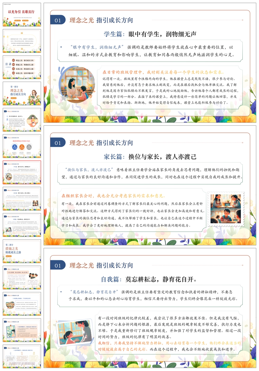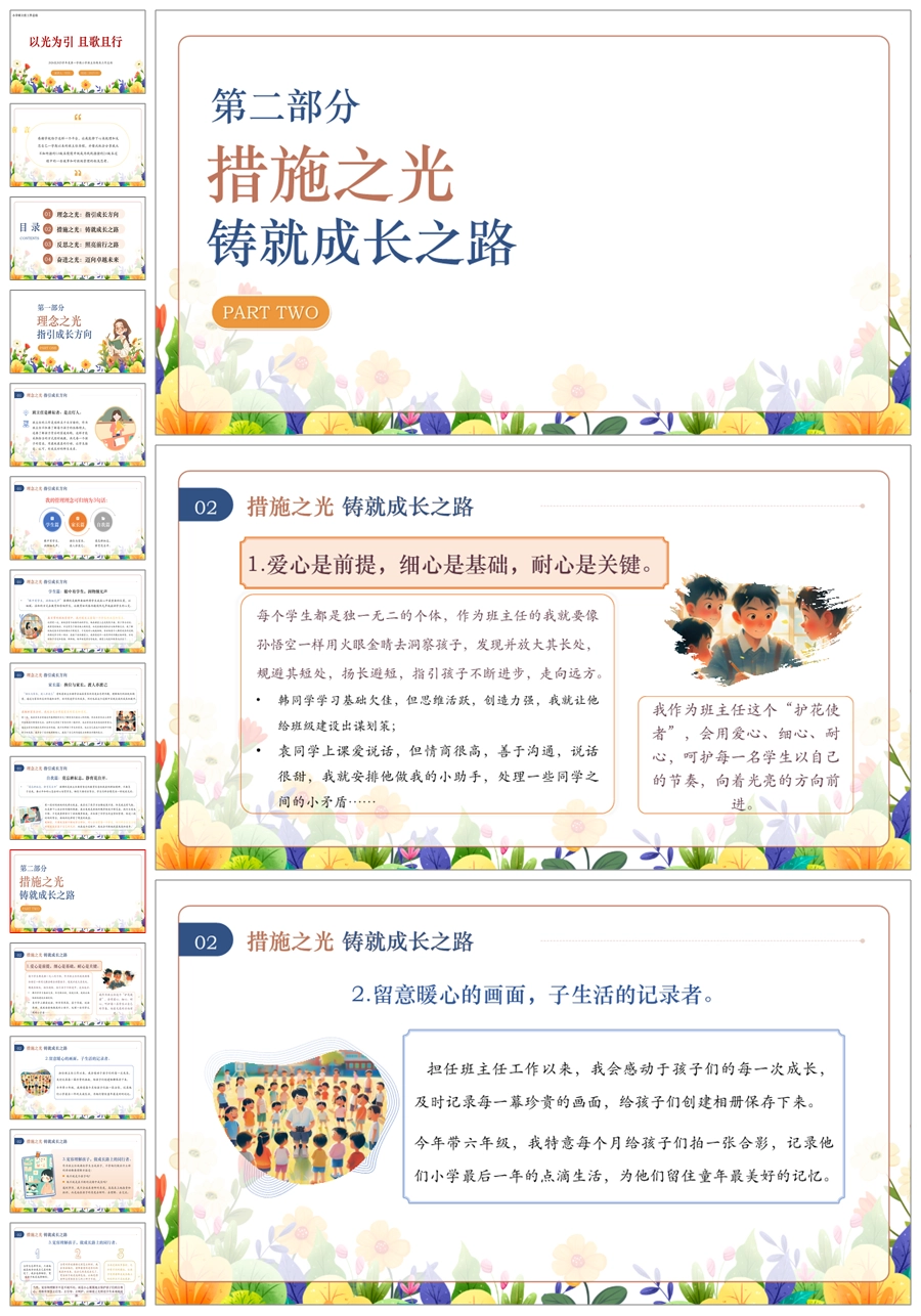 【8243】【工作总结】《以光为引且歌且行》小学班主任期末工作总结PPT(课件+发言稿)