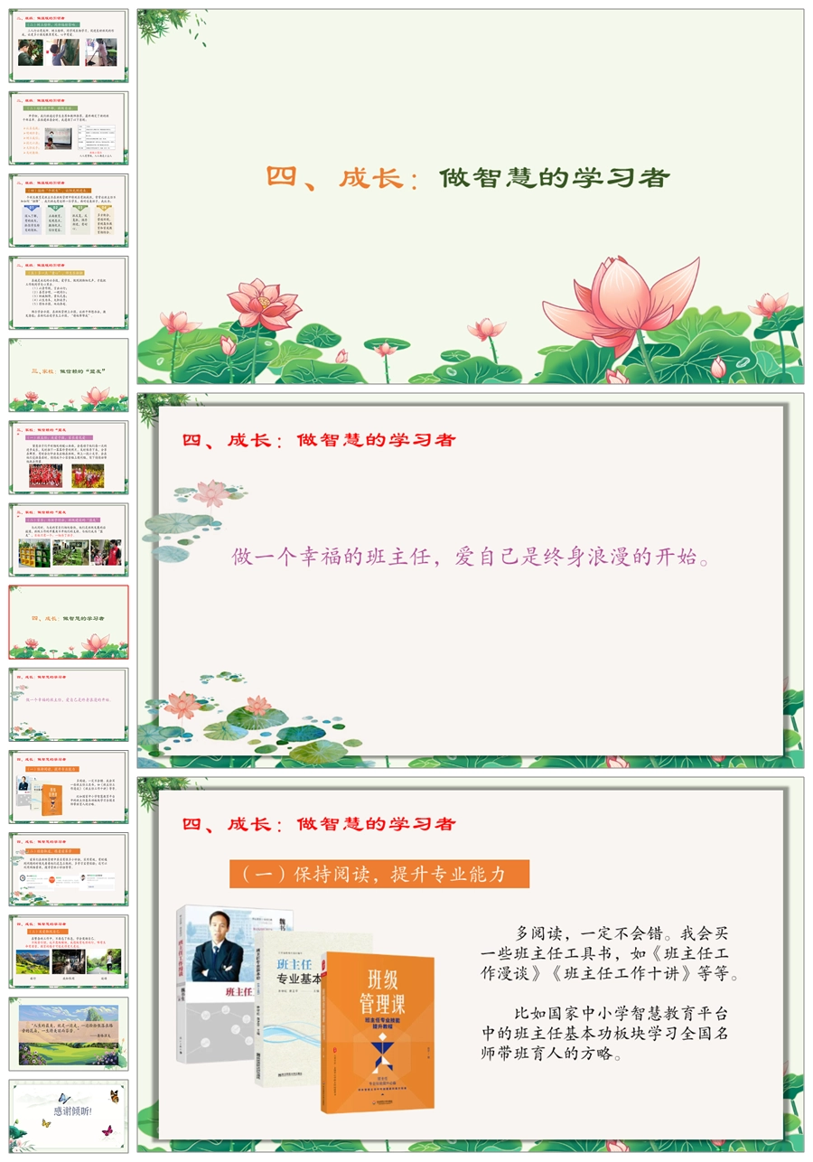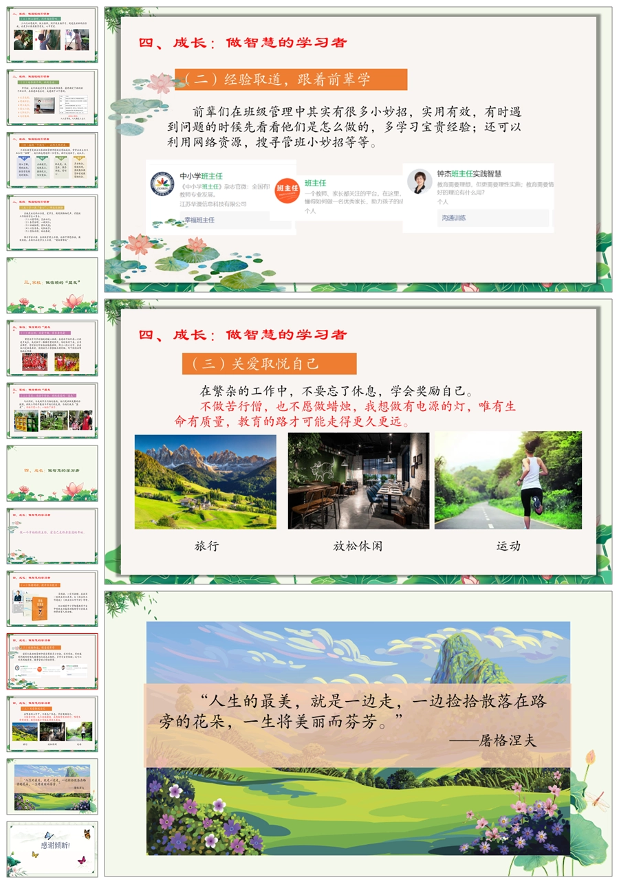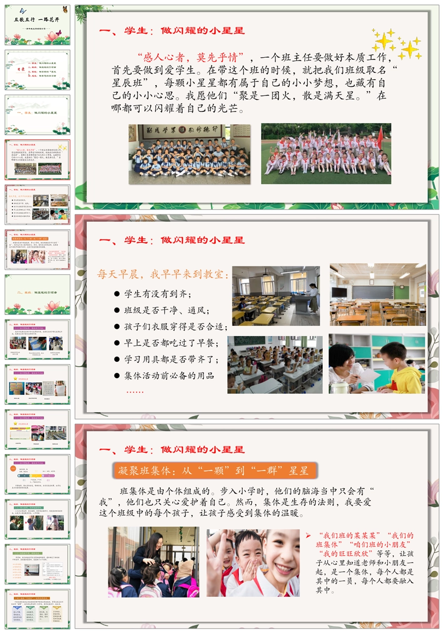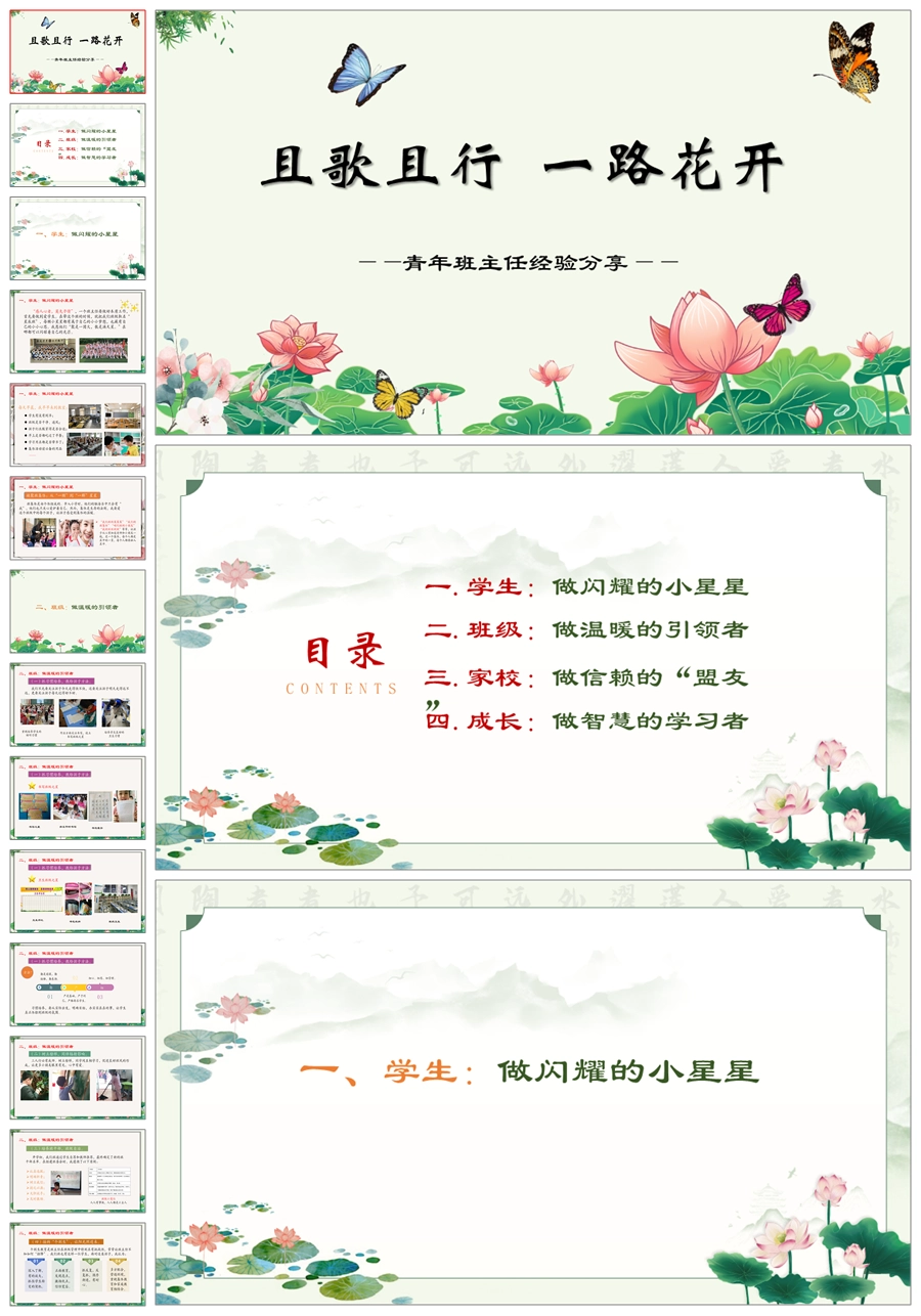 【8252】【经验交流】《且歌且行一路花开》青年班主任工作经验交流PPT(课件+发言稿)