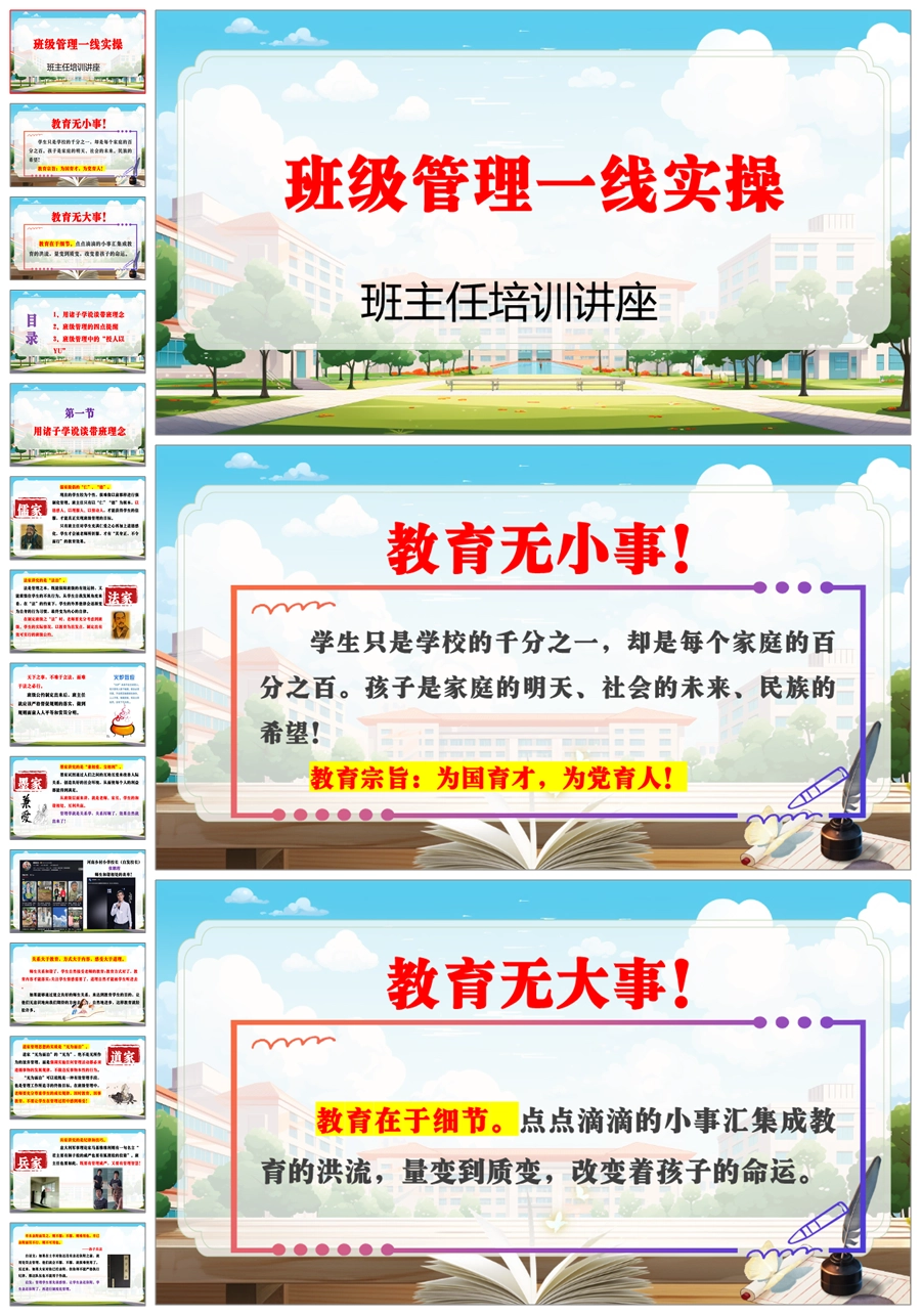 【8529】班主任培训讲座《班级管理一线实操》ppt课件+发言稿(共46张ppt)