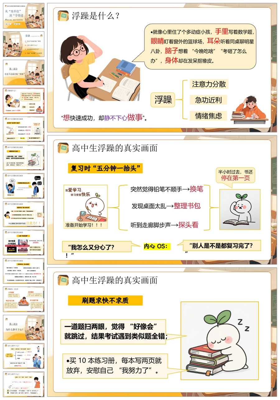 【5048】高中考前复习指导班会《高中生拒绝浮躁》考前复习主题班会PPT课件+教案