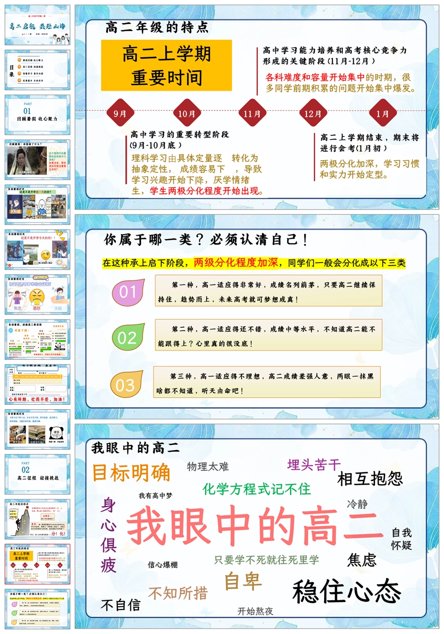 【5054】高二开学第一课《高二启航 共赴山海》高二上学期开学第一课PPT课件+逐字稿