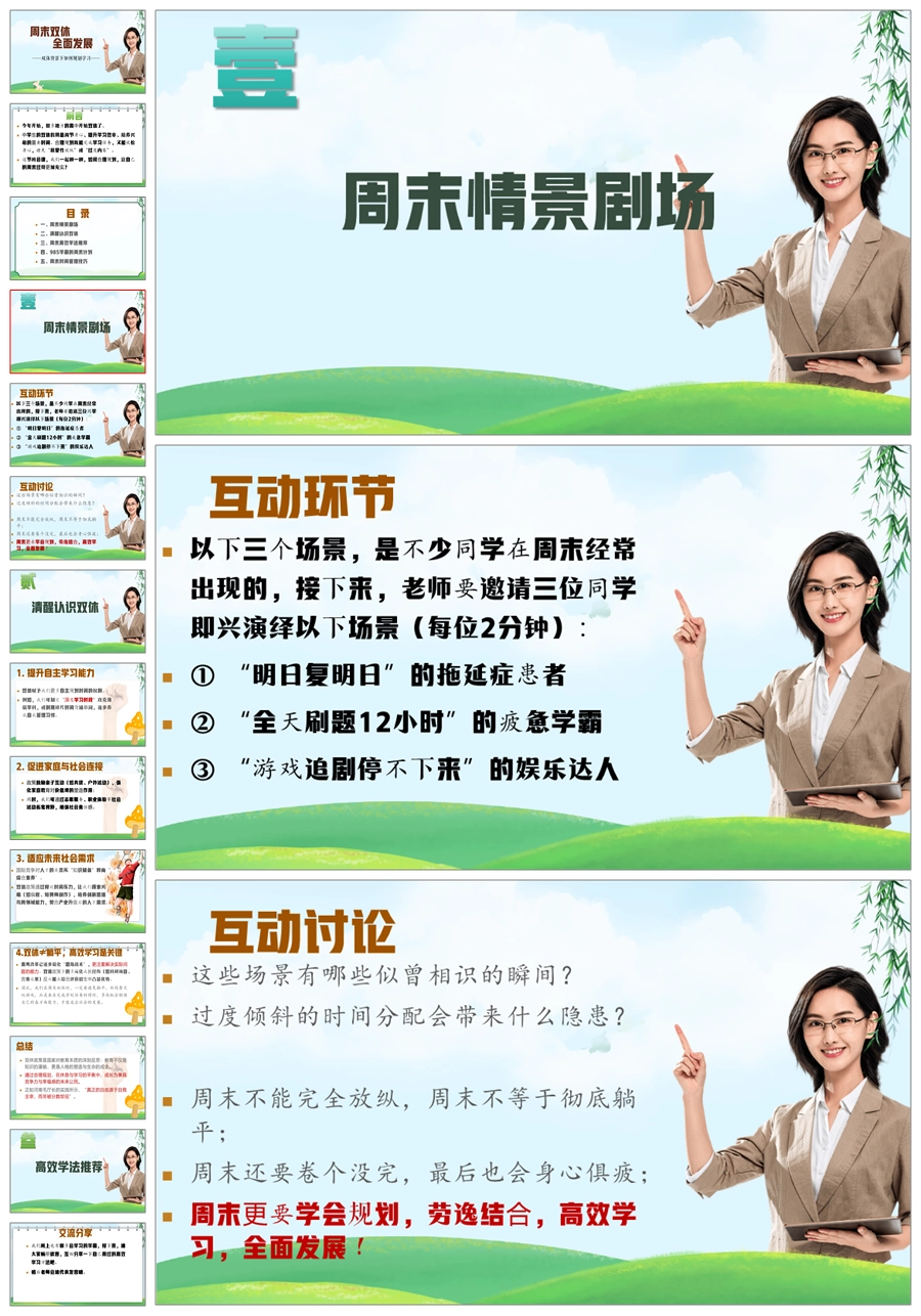 【8313】【双休班会】《周末双休全面发展》高中双休主题班会PPT(课件+逐字稿)