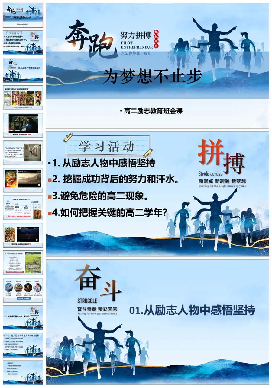 【8009】【励志教育】《为梦想不止步》高二励志主题班会课件PPT(课件+视频)