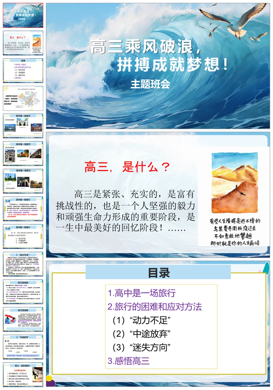 【8057】【高三励志】《乘风破浪,成就梦想》高三我来了主题班会PPT(课件+视频)
