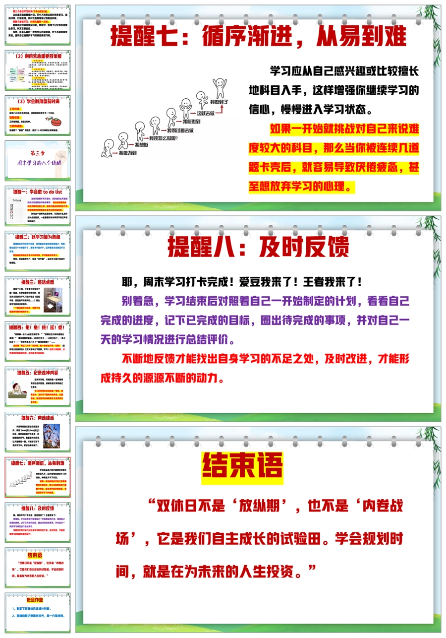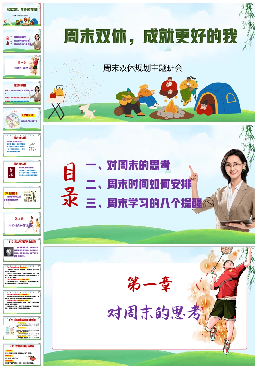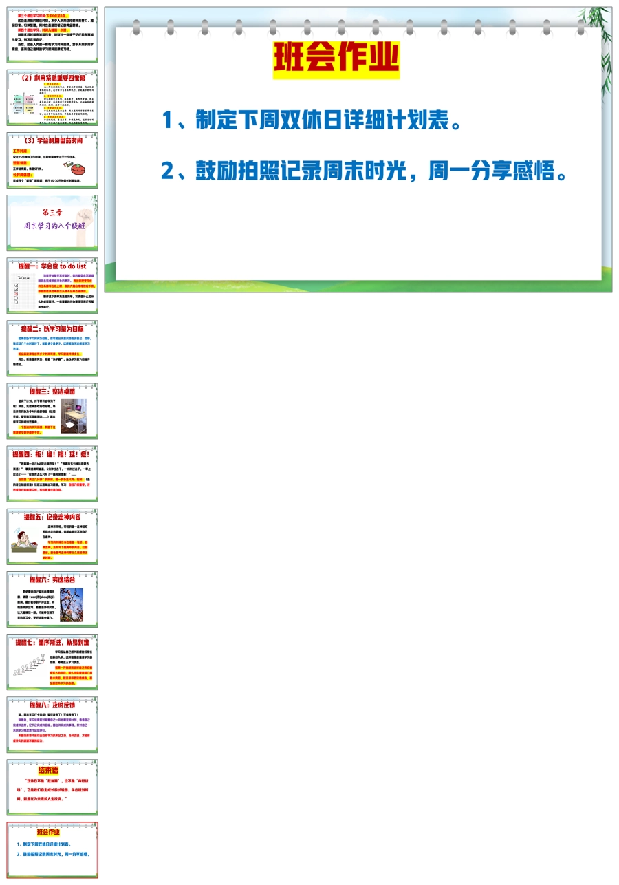 【8312】【双休班会】《周末双休,成就更好的我》高中双休班会课PPT课件(课件+发言稿)