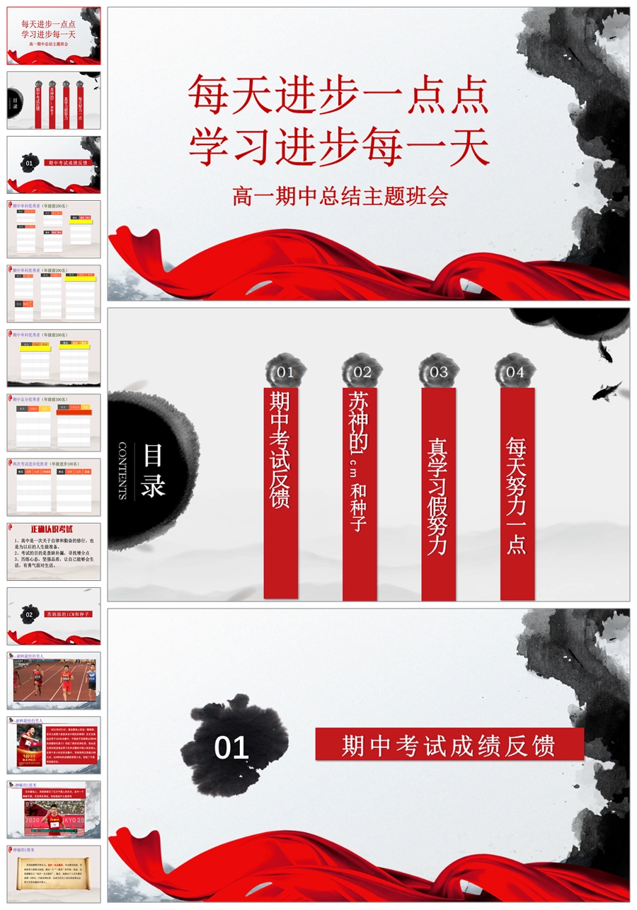 【8354】【期中总结】《每天进步一点点学习进步每一天》高一期中总结主题班会PPT(课件+发言稿)