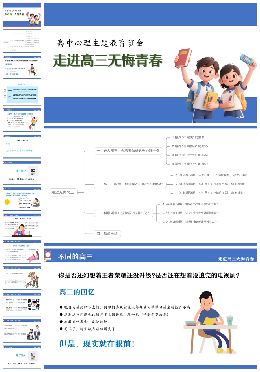 【8502】《走进高三无悔青春》高三备考心理准备与调适高三心理健康ppt课件+发言稿