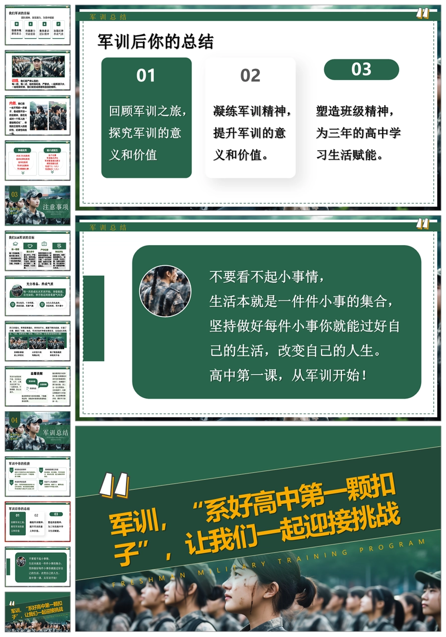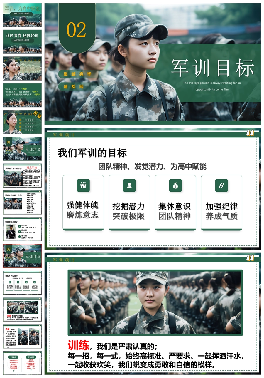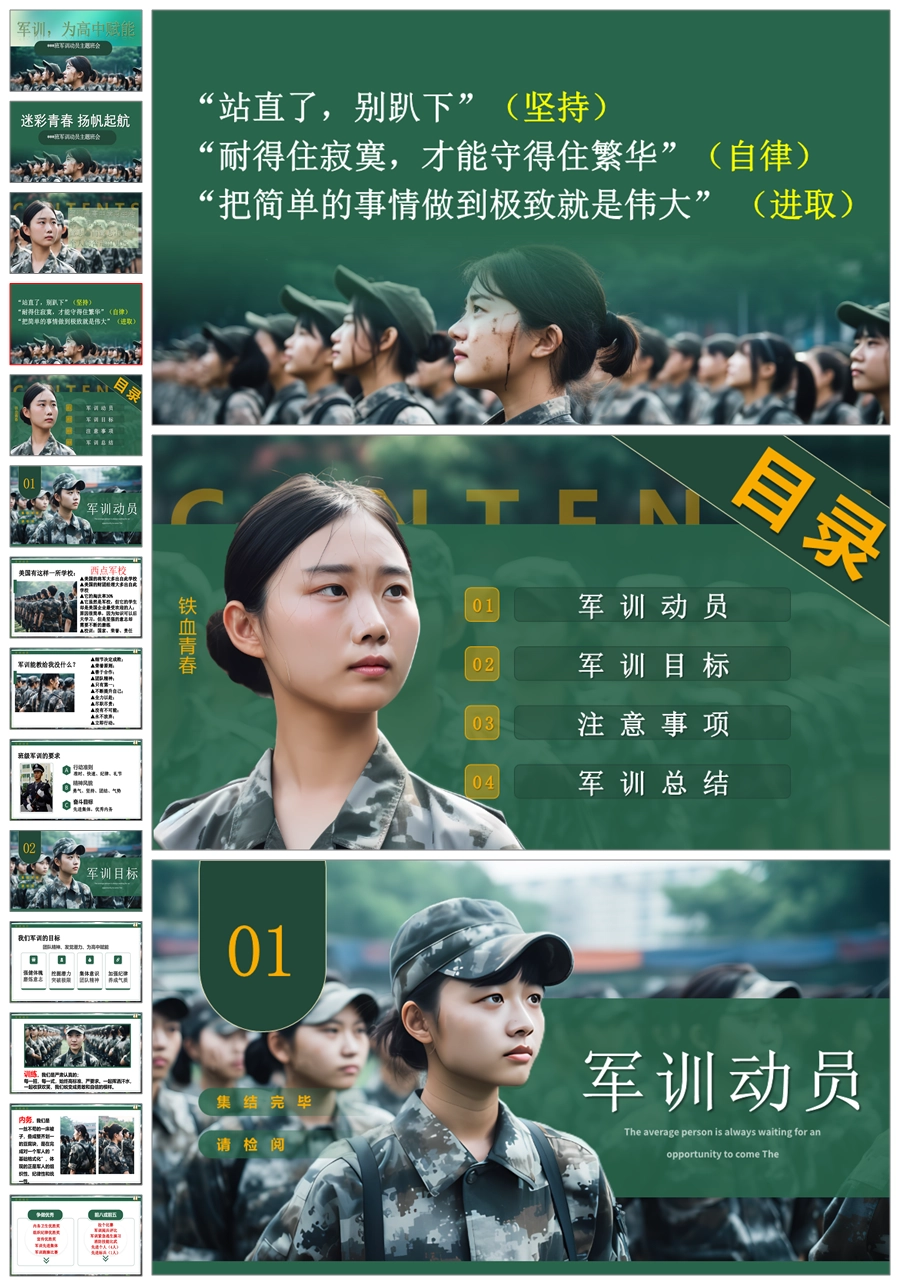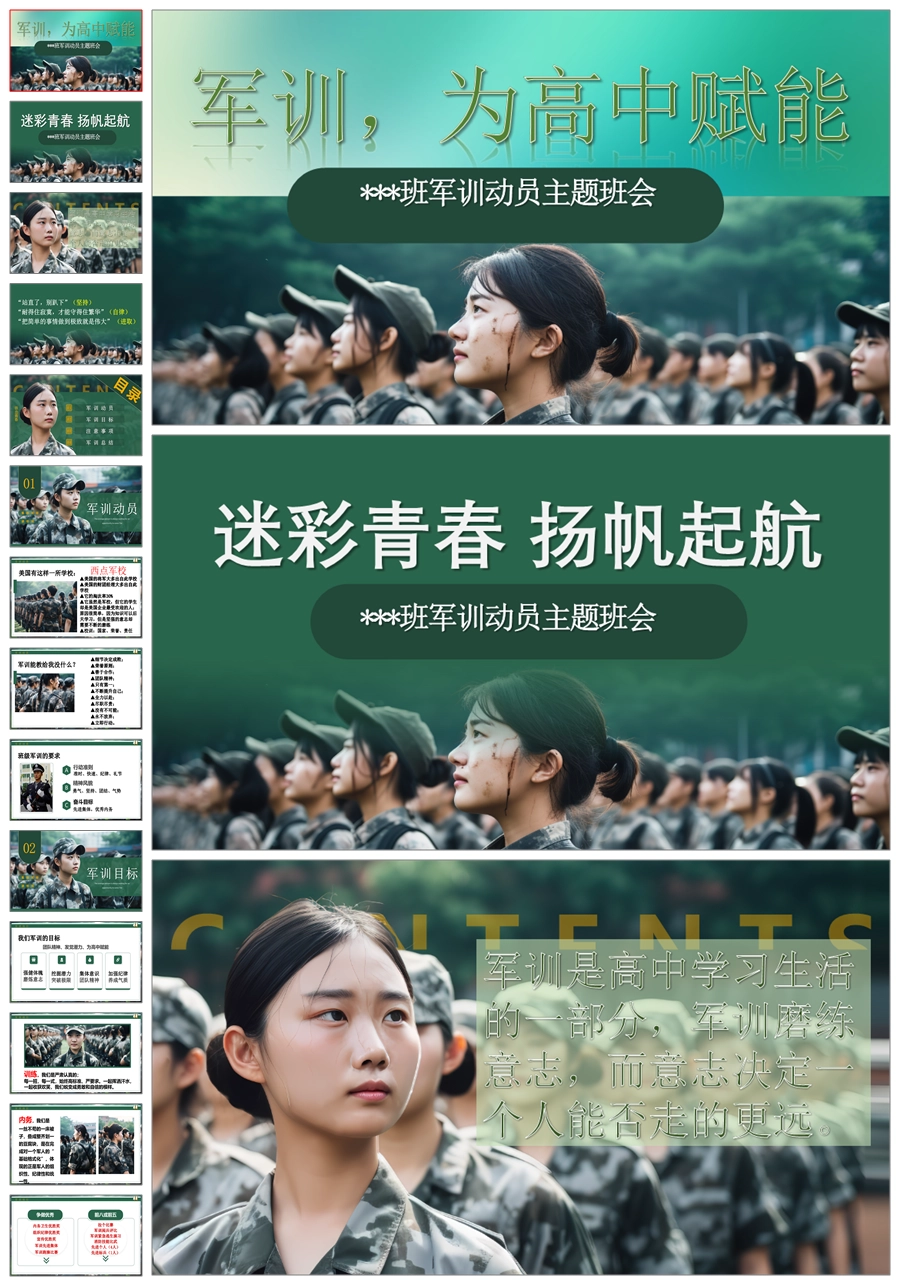 【8514】【军训动员】《迷彩青春 扬帆起航》高一新生军训动员主题班会PPT课件+发言稿