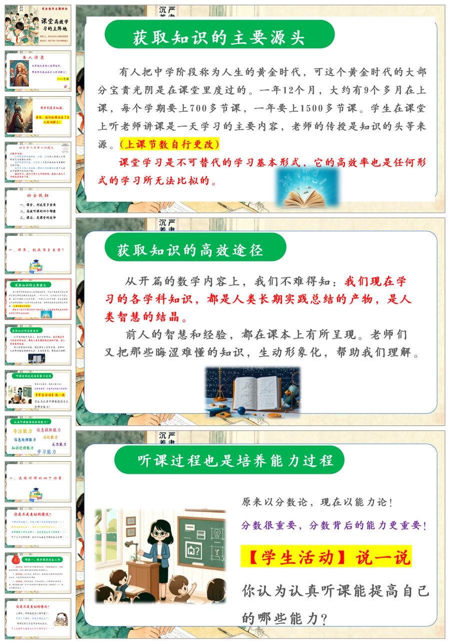 【8582】《课堂,高效学习的主阵地》学法班会ppt课件+教案